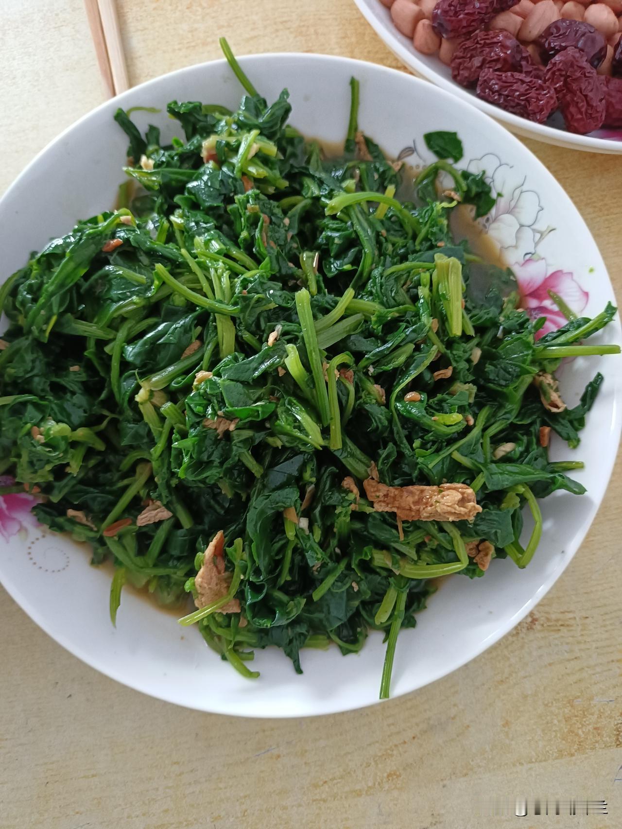 拌菠菜最受欢迎,一大盘子拌菠菜都吃光了。