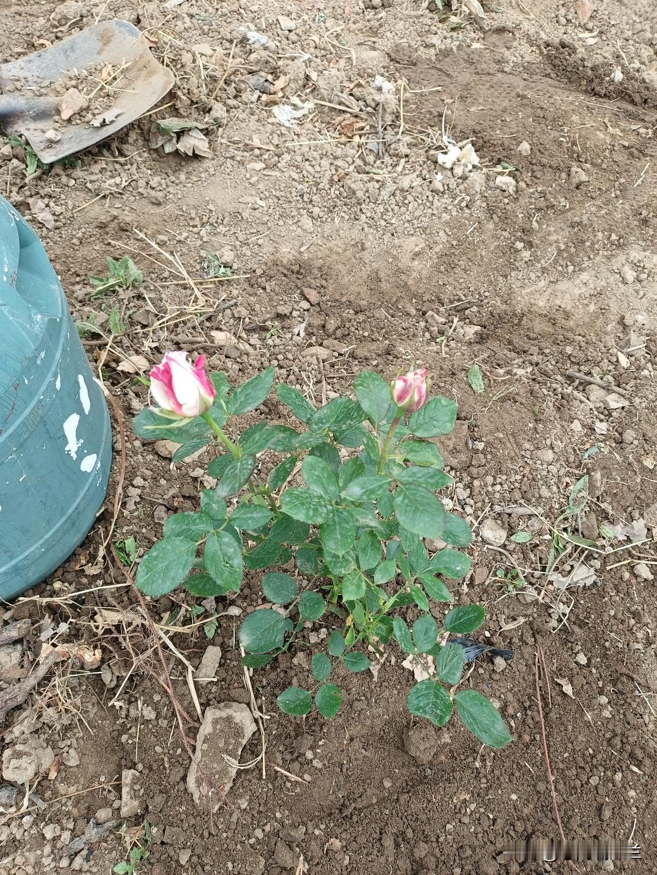 这两个棵月季花都是带着花苞的,一棵是玫红色的,还有一个是粉白色的,过两天就能开,好期待开花的样子。