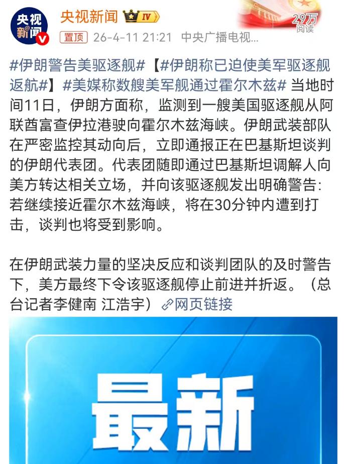 如果它真想开打,被伊朗警告后何必掉头鼠窜?直接硬闯把开火的锅扣给伊朗不就行了。说到底,海峡战舰掉头鼠窜之后,老美不想再开火打的底色,已经暴露无遗了。