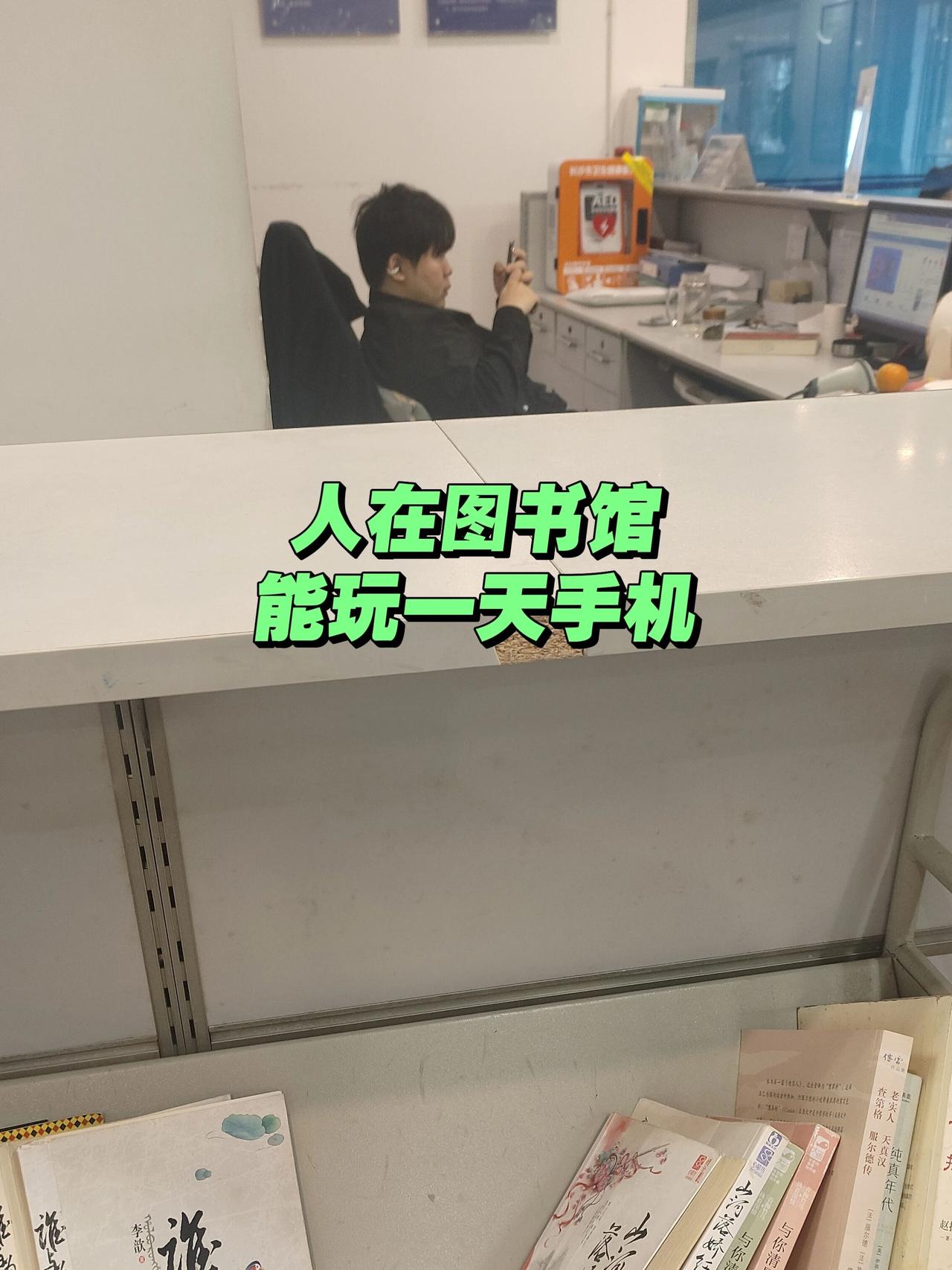 真佩服这个年轻人,在图书馆上班,能玩手机一天不抬头,简直暴殄天物,生在福中不知福。