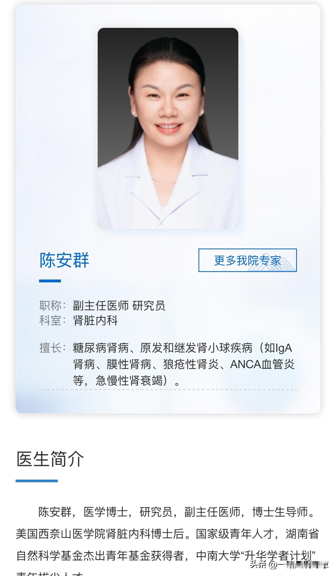 陈安群、中南大学湘雅二医院教授、博士生导师、副主任医师