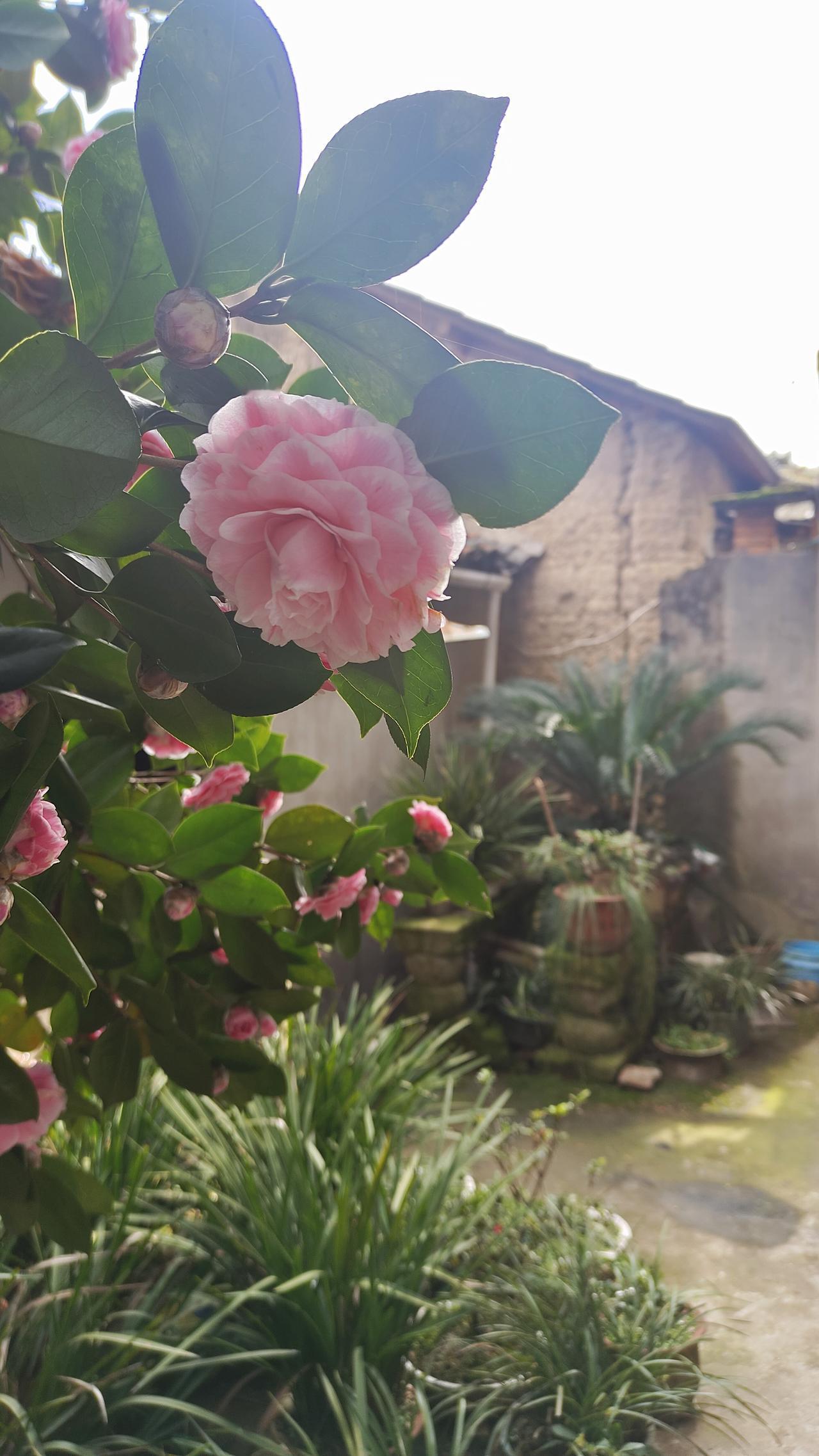 这次春节特别暖和,院子里的山茶花开的特别旺。