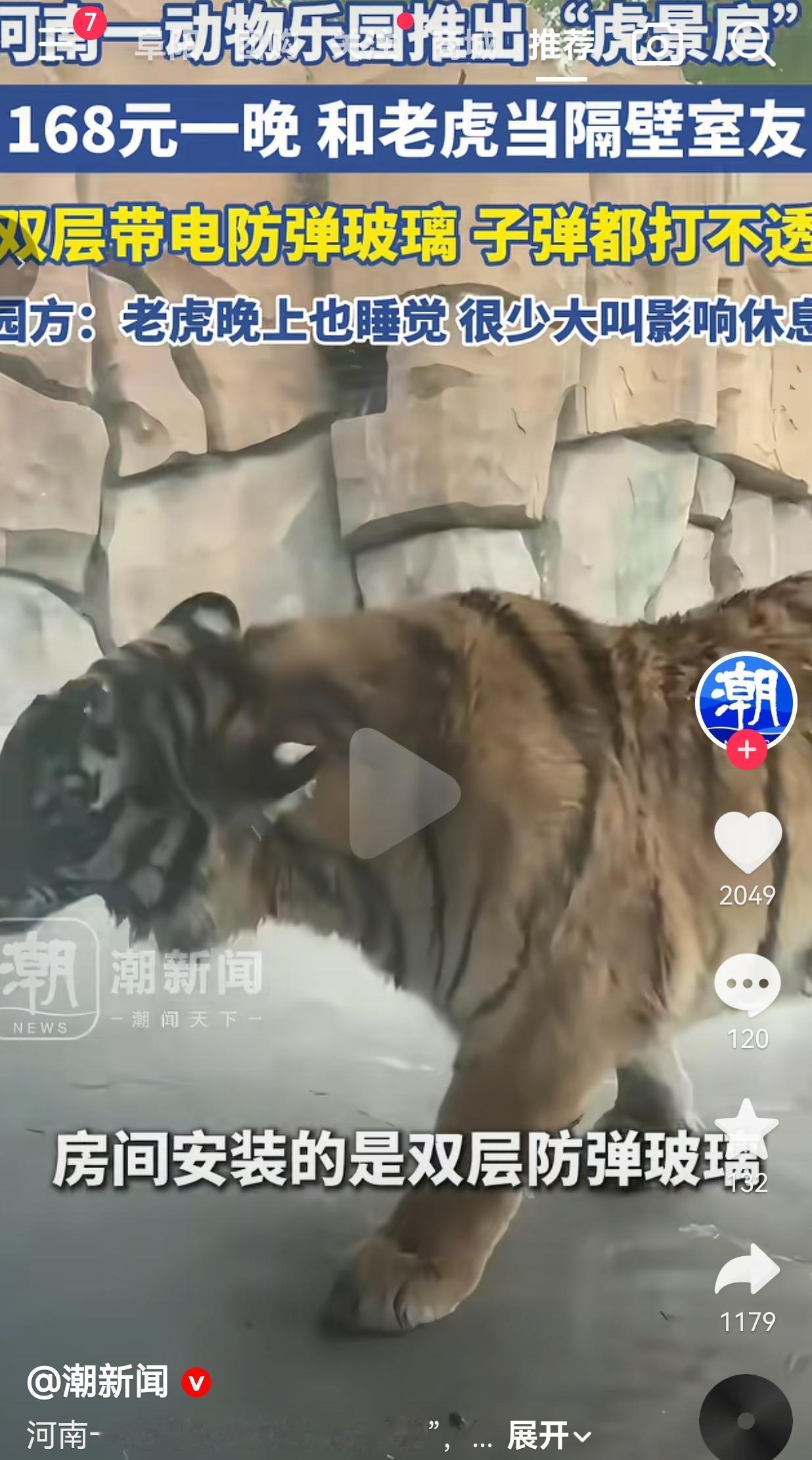 河南沁阳的一家动物乐园,最近他们推出的“虎景房”套餐,一曝光就炸了锅。