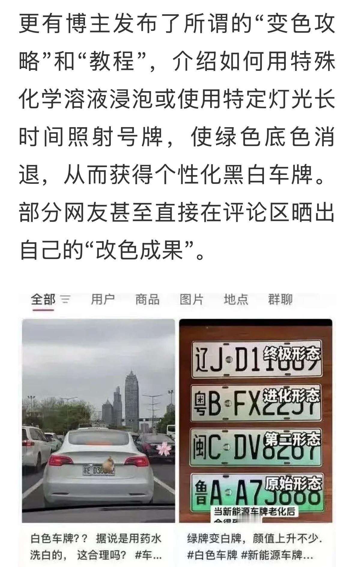 多地新能源车牌绿色变白色看到有人拿化学药水泡、用灯烤,硬把新能源绿牌“褪”成白底