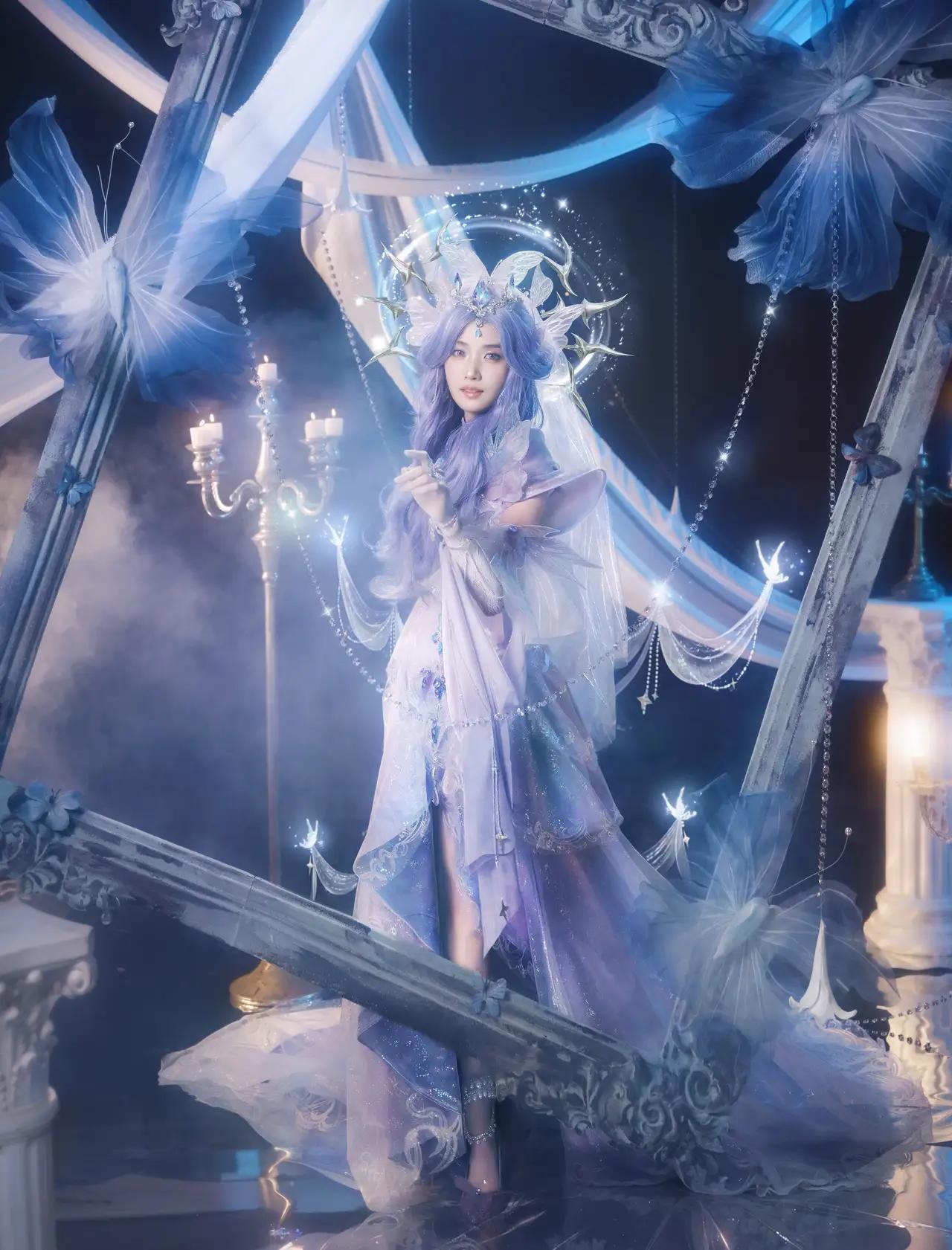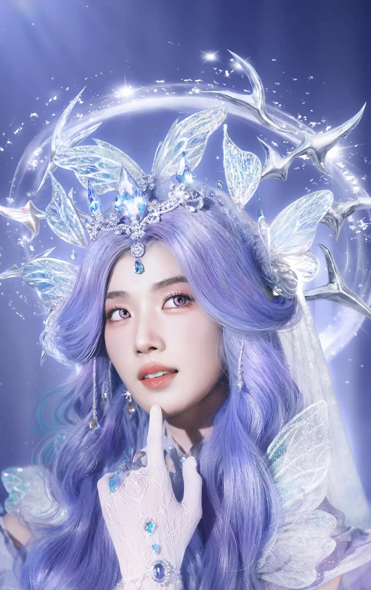 美女壁纸~卢昱晓,当紫雾漫过星夜,蝶翼载着碎光落于发间,是从幻梦里走出的精灵公主;当银霜覆满华服,冰晶凝作王冠,是执掌寒域的冰雪女王