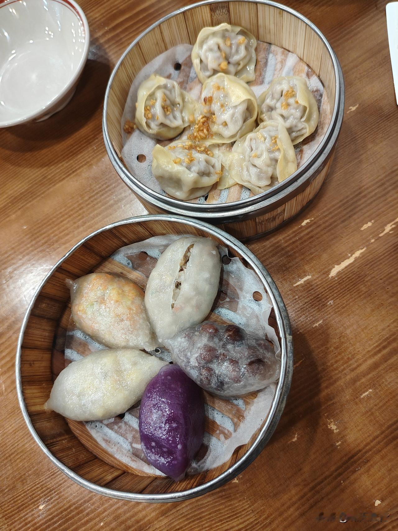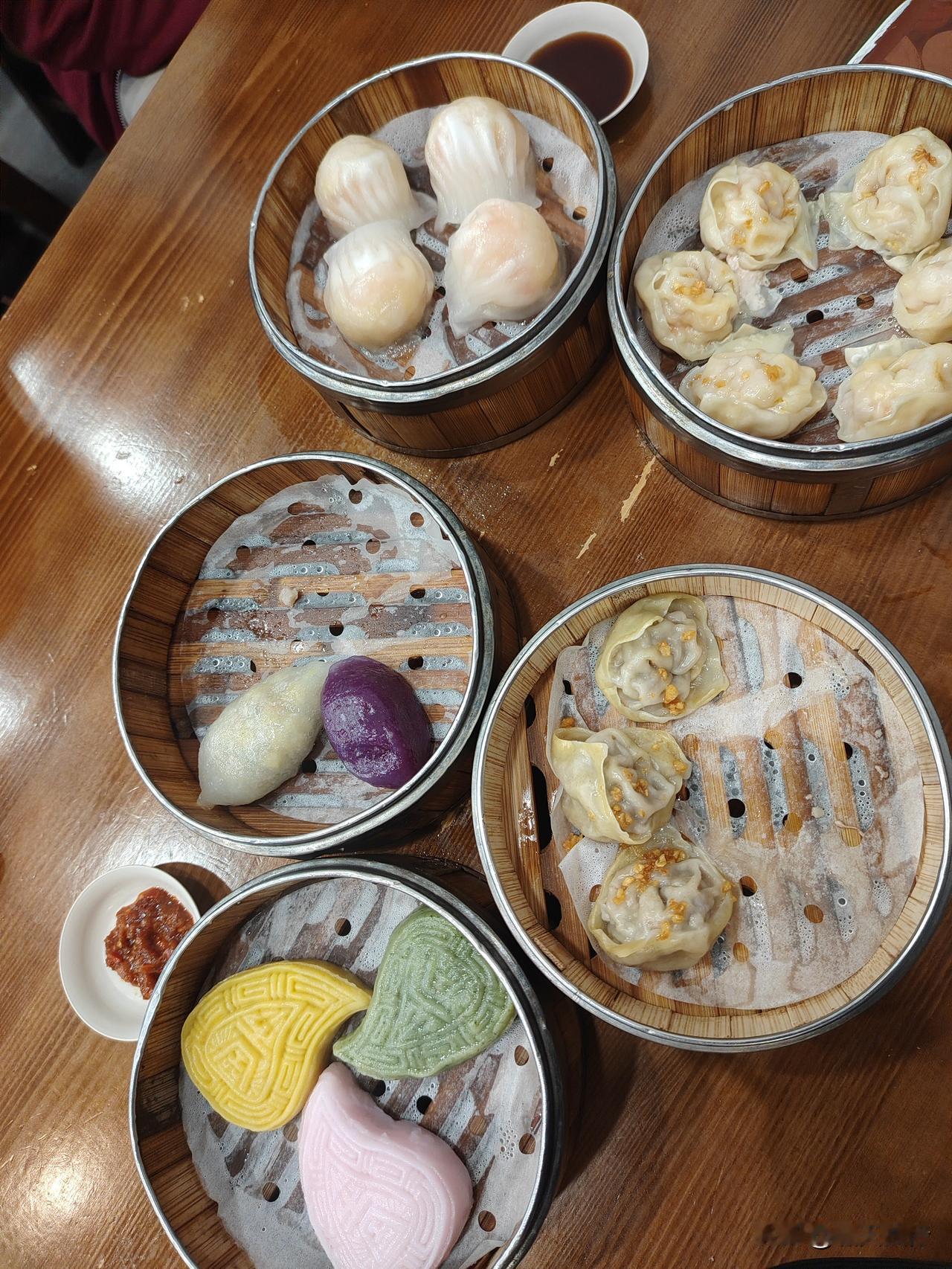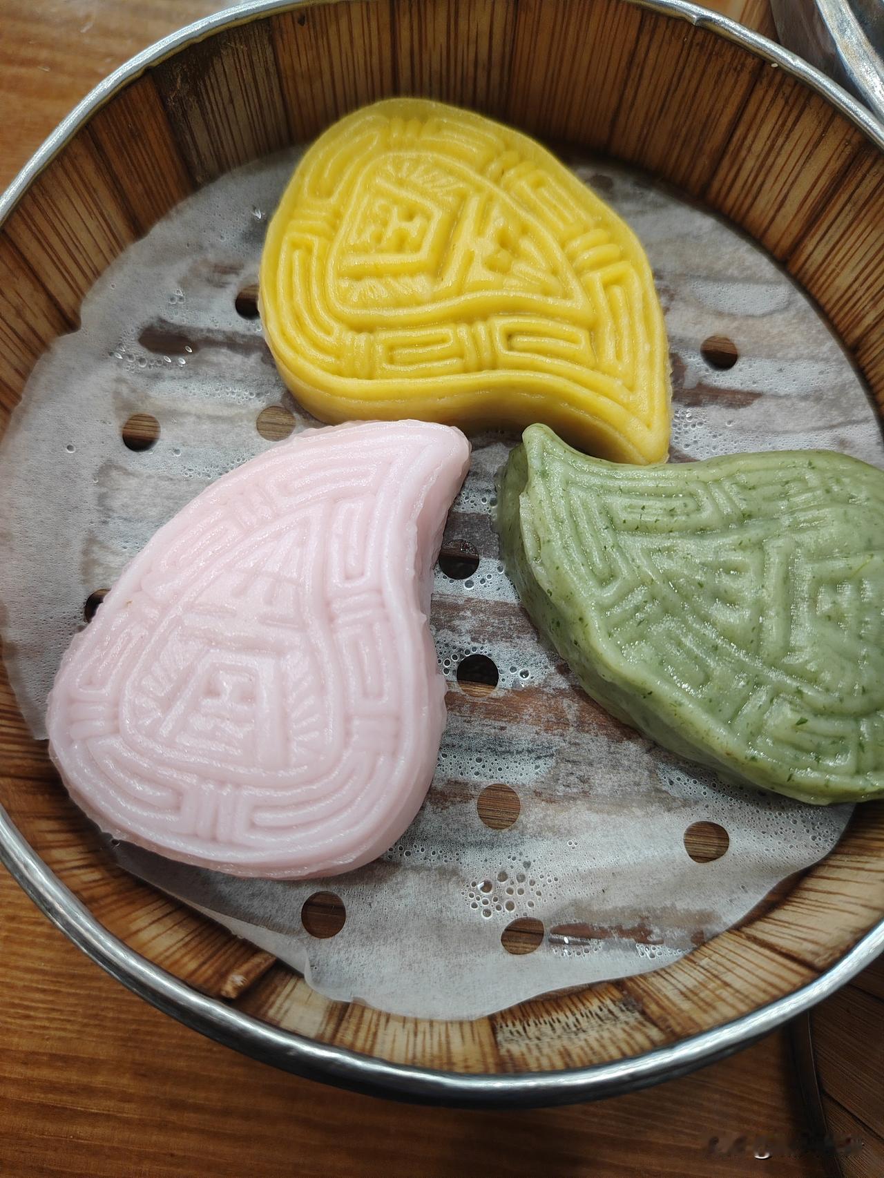 头一次啊,享用广式早茶,在广东,在潮州,在——百家早茶。 点了套餐,略有优惠,包括秘制牛肚、虎皮凤爪、水晶虾饺、牛肉蒸饺、紫菜鲜肉蒸饺、五福蒸饺各一份,茶一壶,老板送了三色粿糕。不远几千里来到这里,一饱口福吧,好吃好心情。[大笑][大笑][大笑]