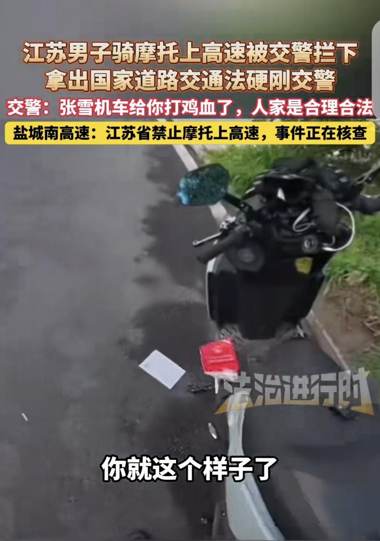 据4月14日法治进行时报道,江苏盐城近日发生一起摩托车上高速引发的争议事件。