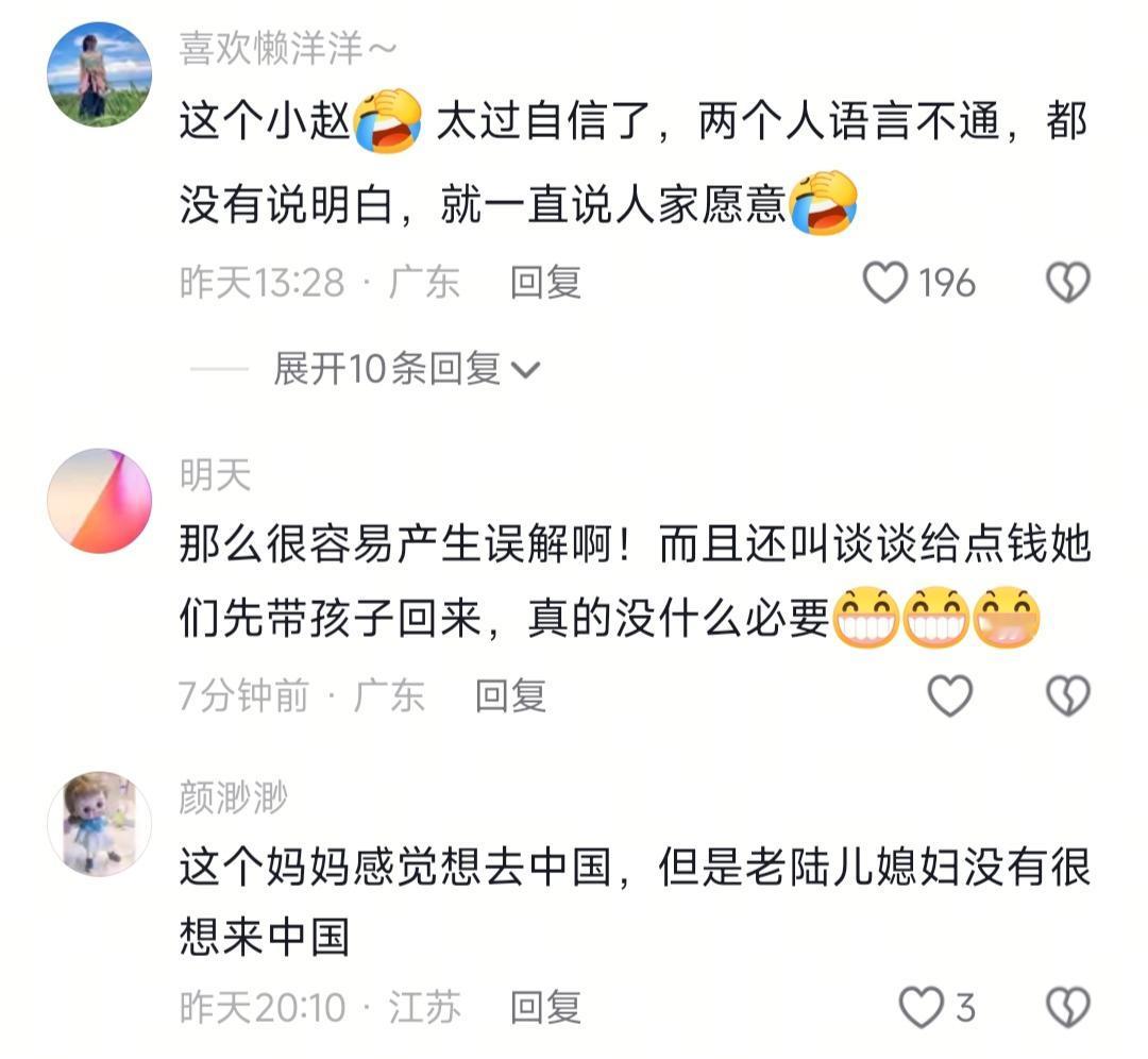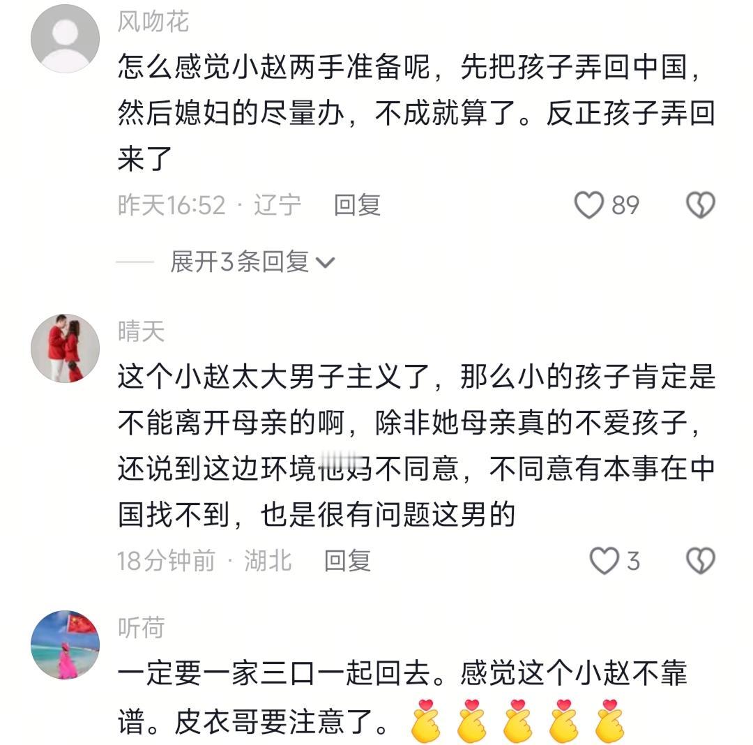总之,我想说的是,真的别搞这种“我先回再来接你”的操作,手续不齐绝对不能放对方单独带孩子。还有啊,遇事别总拿爸妈当挡箭牌,夫妻之间连这点信任都没有,还过啥日子呢?你们觉得小赵到底安的什么心?巴基斯坦媳妇儿