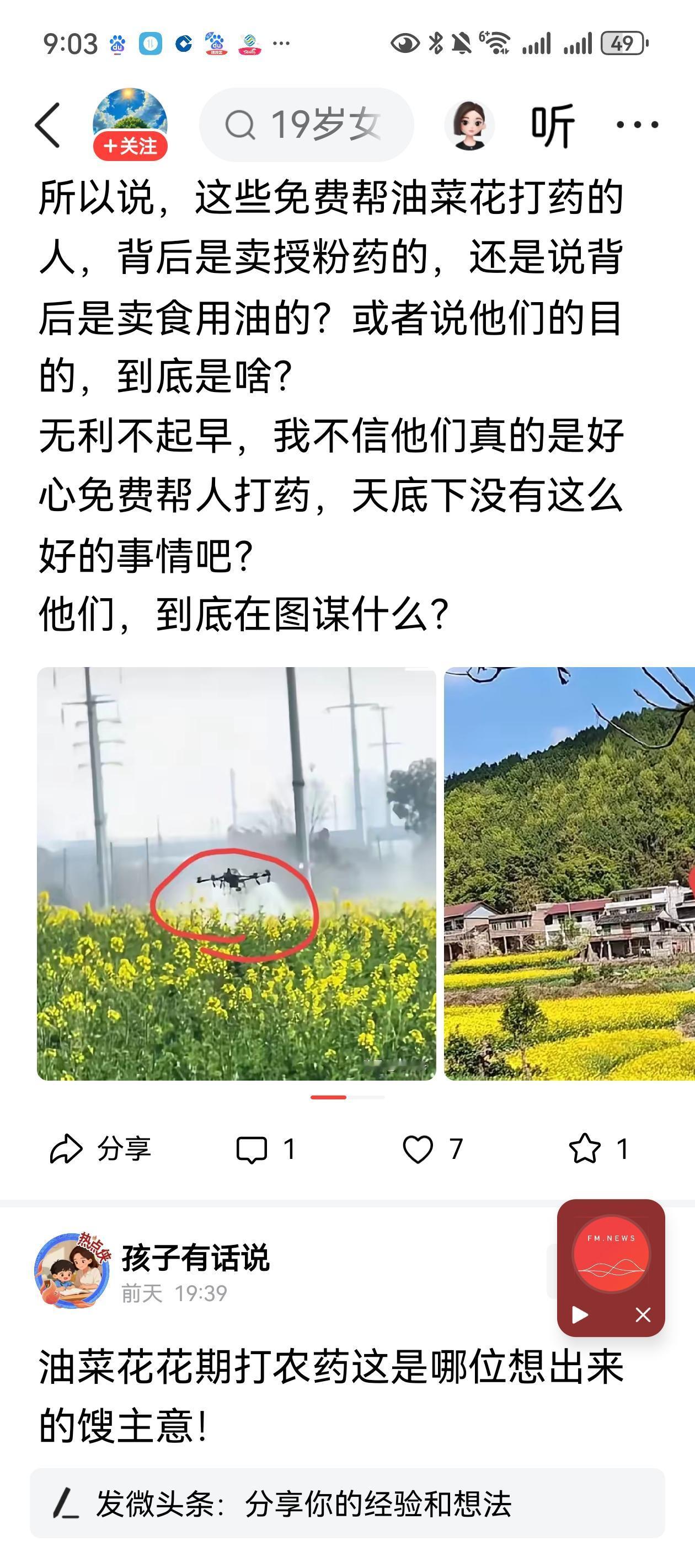 油菜花期是基本没有虫害的,这时候打药伤害的是蜜蜂。油菜是虫媒花,需要蜜蜂授粉。另