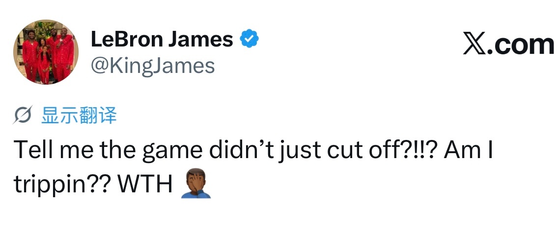 NBA on Prime因技术故障中断了直播信号,詹姆斯在线吐槽:告诉我比赛不是就这么突然中断了?!?我是不是看错了?搞什么啊🤦🏾♂️