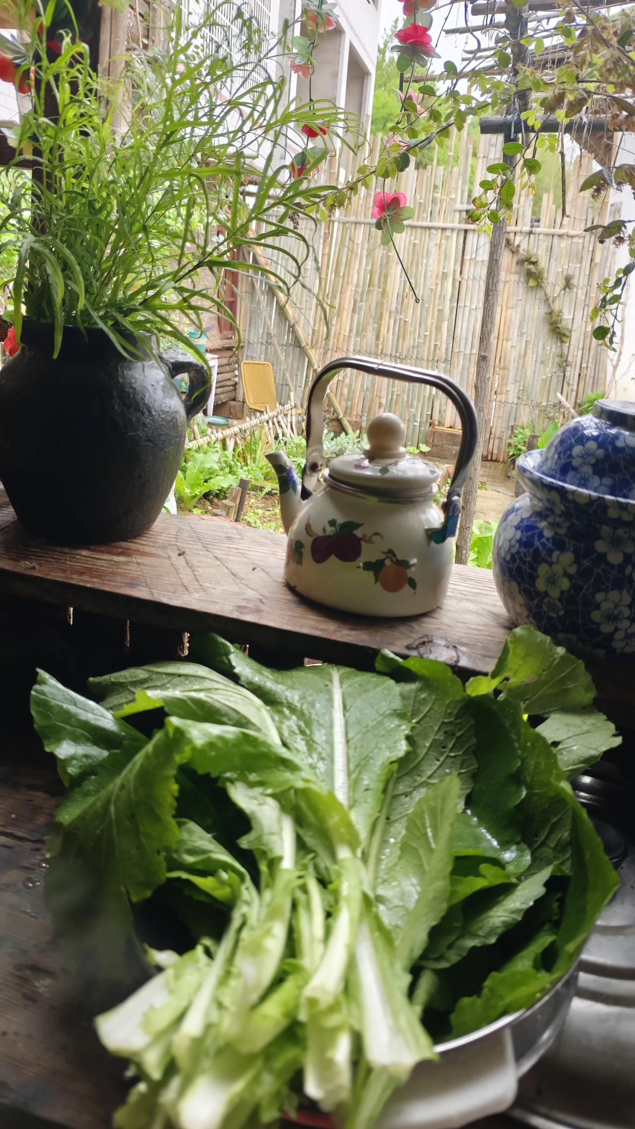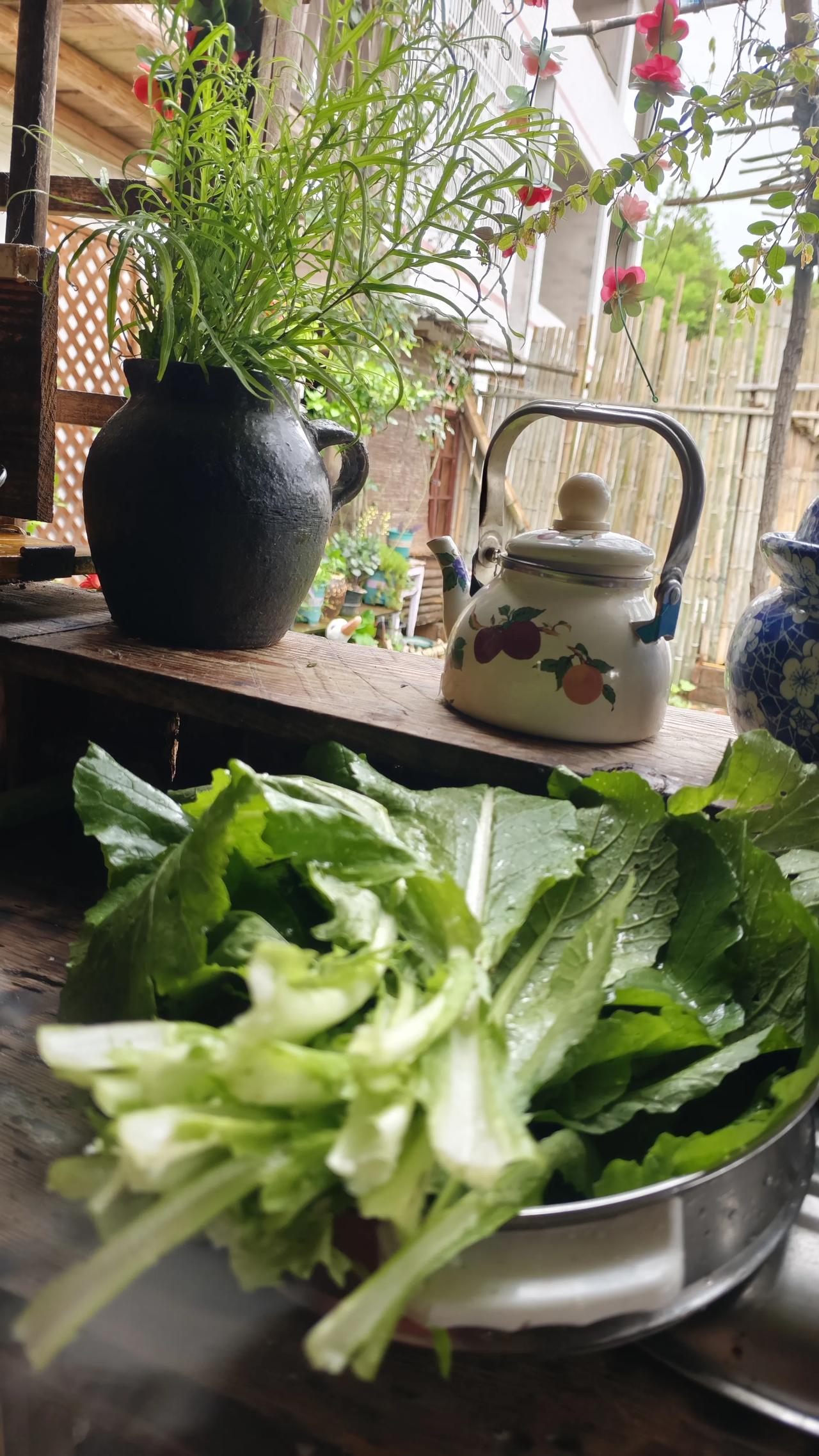 这几天一直下雨,没出去买菜,好在院子里种的菜长势喜人,每天拔一把就够吃了,今天又拔上一把就算是今天的素菜了,这可以无任何农药的小白菜哟……[呲牙][呲牙][呲牙]……