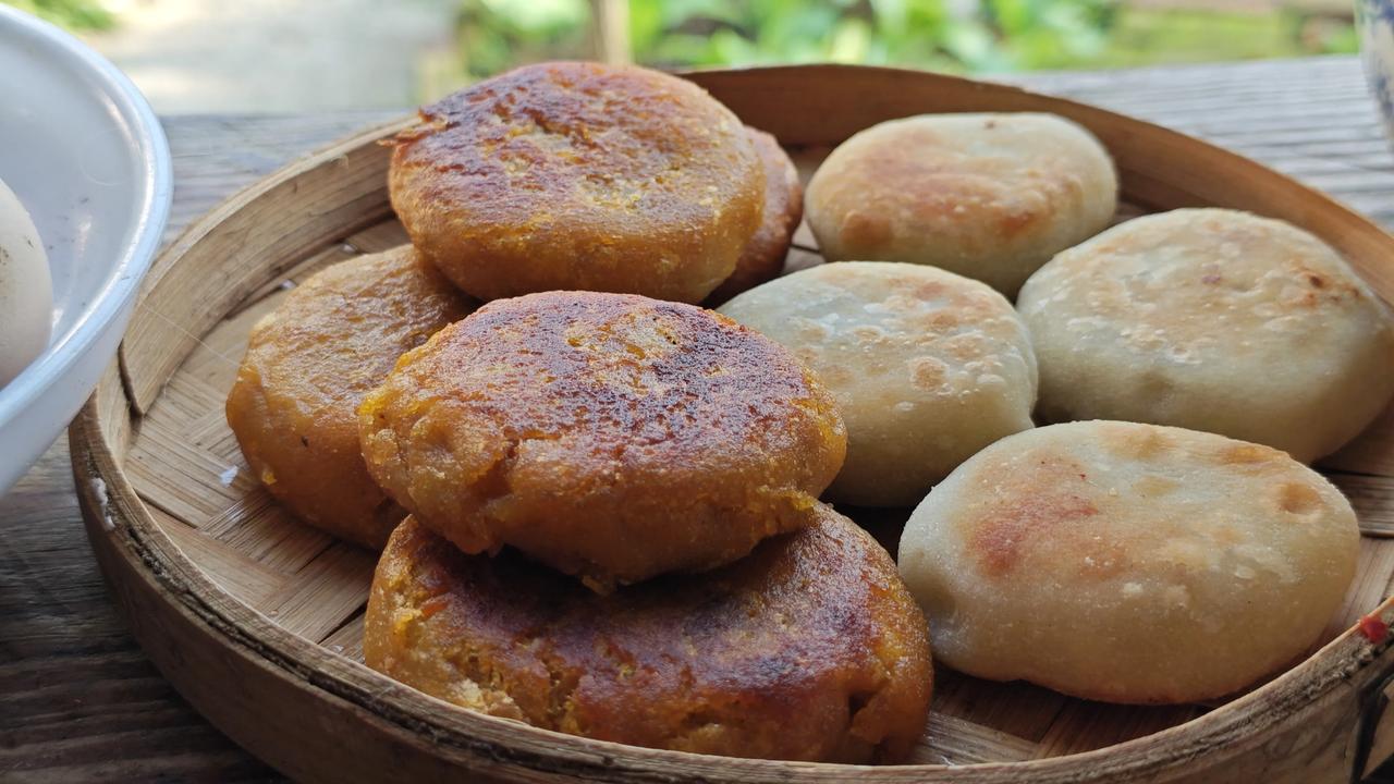 早餐也简单红薯饼,馅饼,一堆杂粮……
