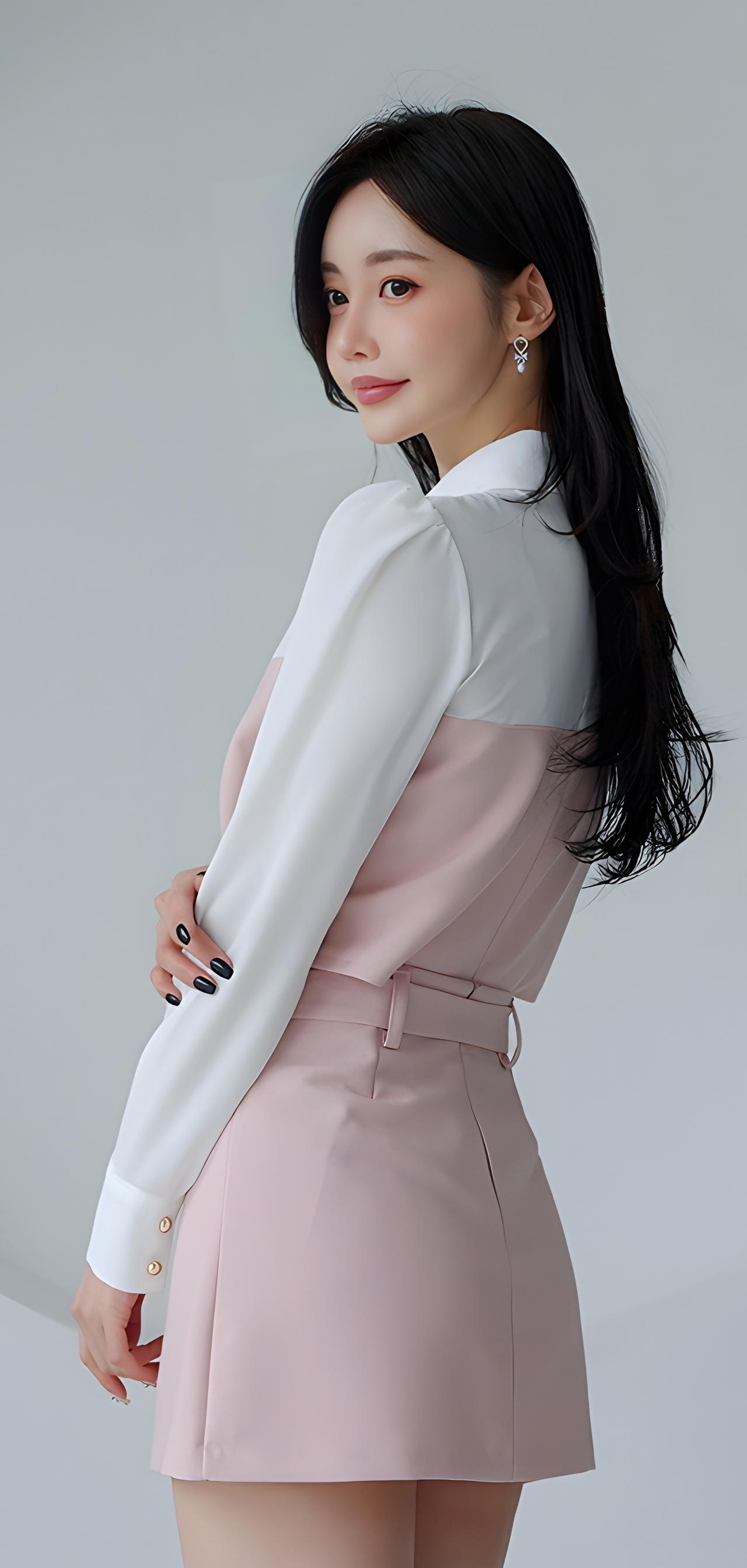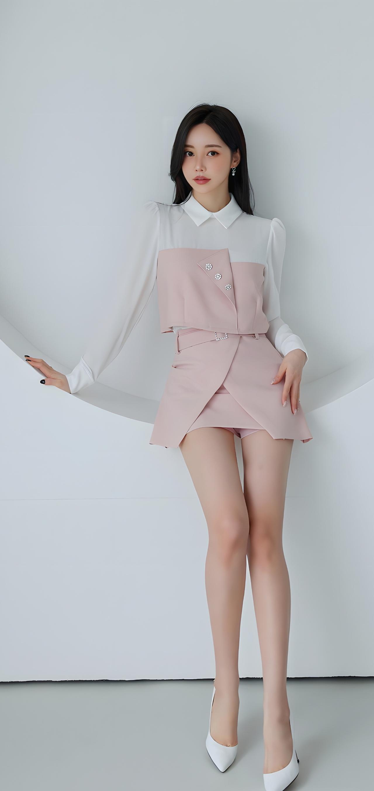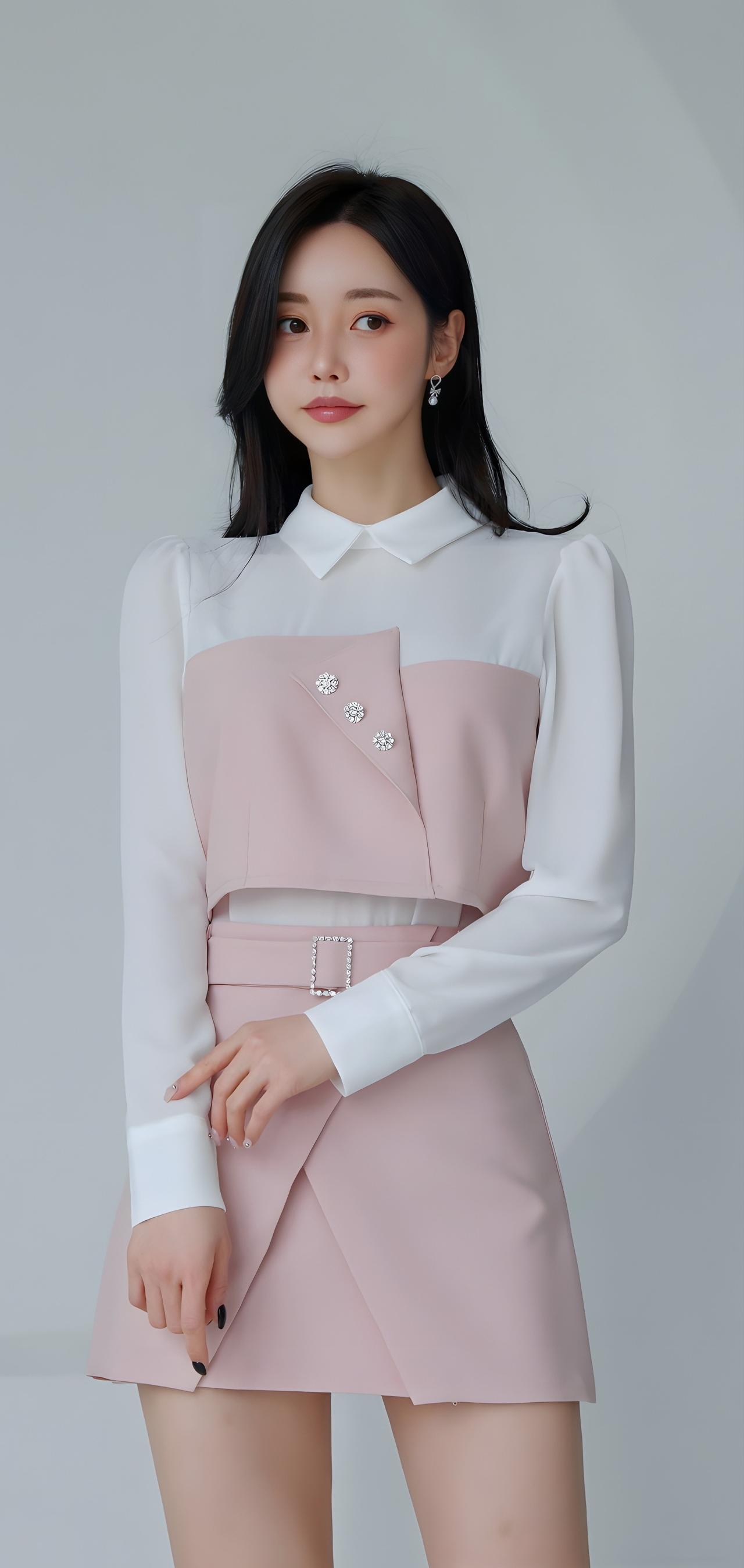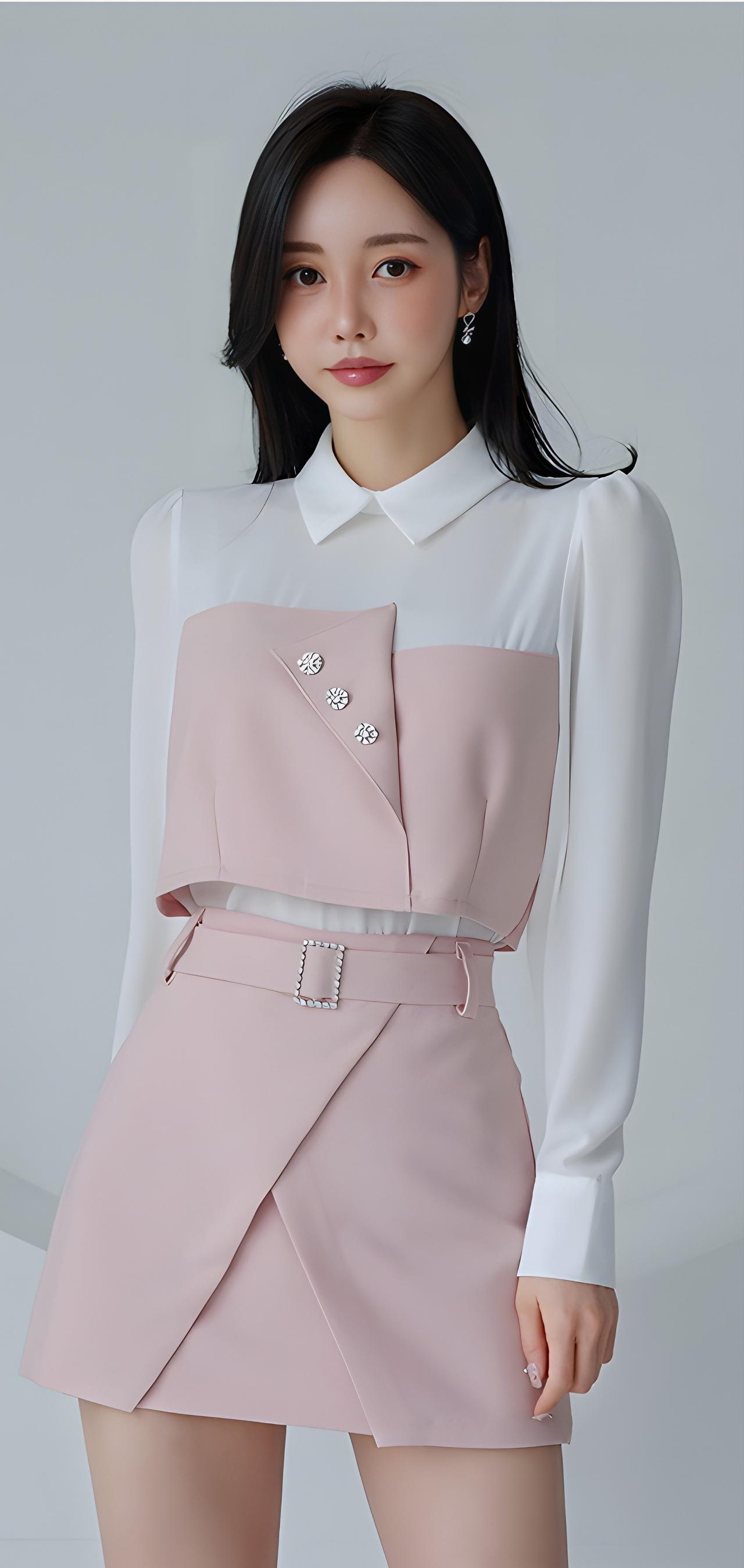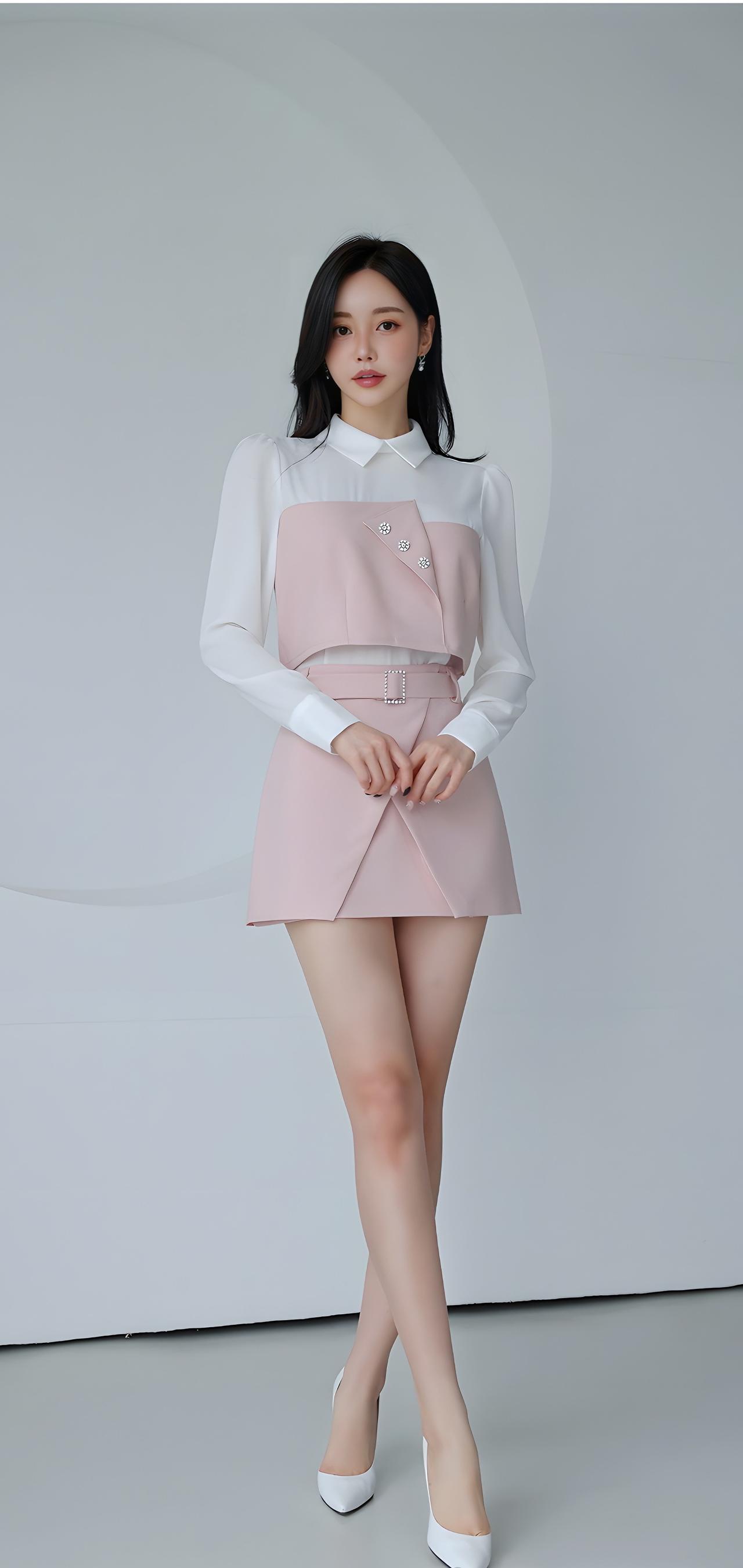 甜美少女风穿搭,粉色裙装搭配白色衬衫,优雅迷人!