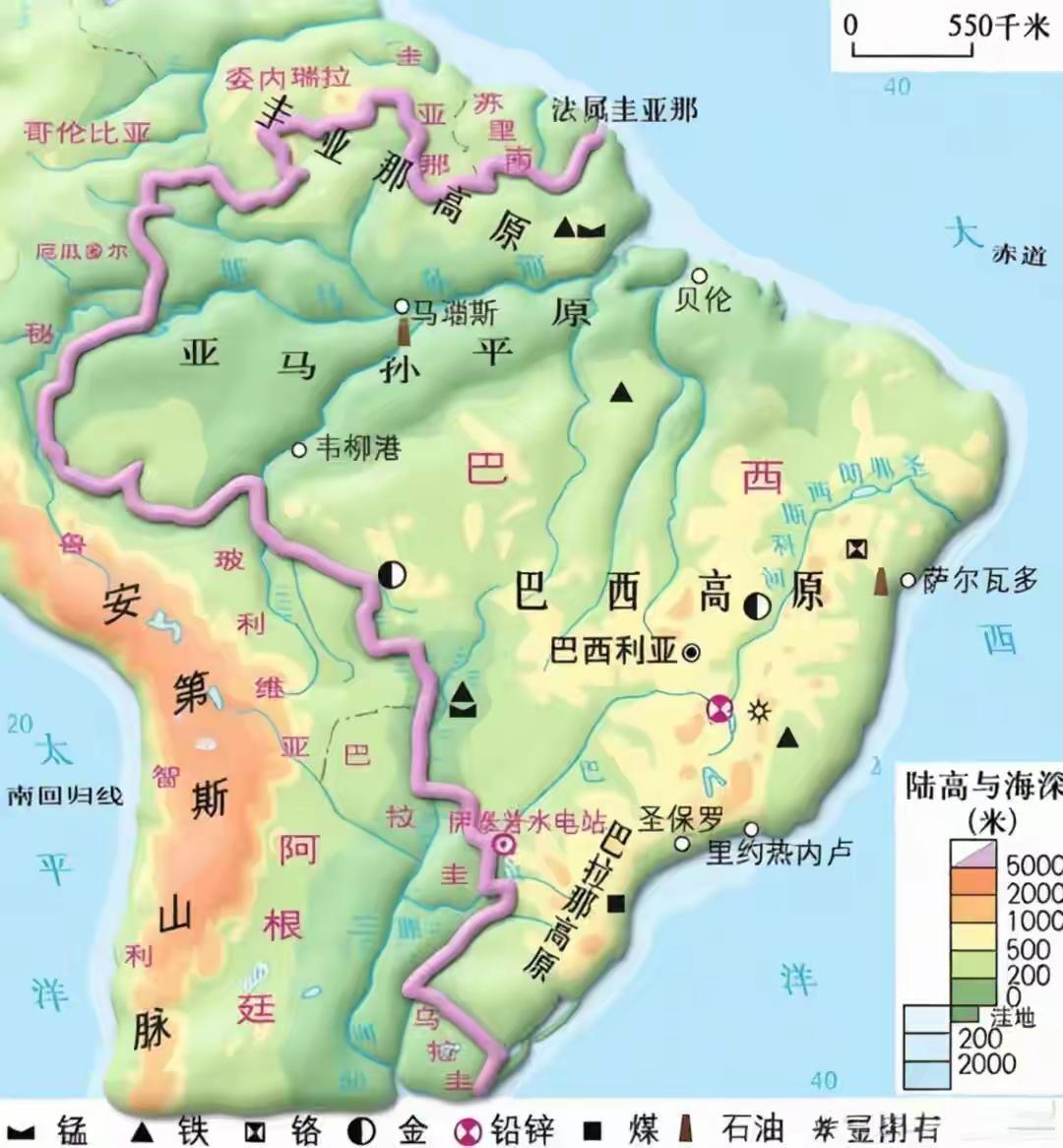 巴西这么优越的条件,为什么经济排不到前面呢? 我们先看一下地形,这个条件应该是世