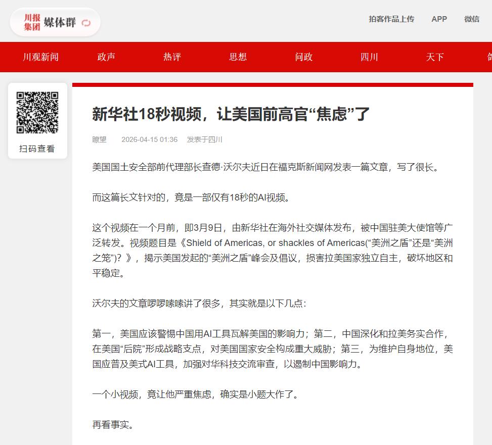太夸张!新华社18秒小视频,逼得美国前高官写长文反驳