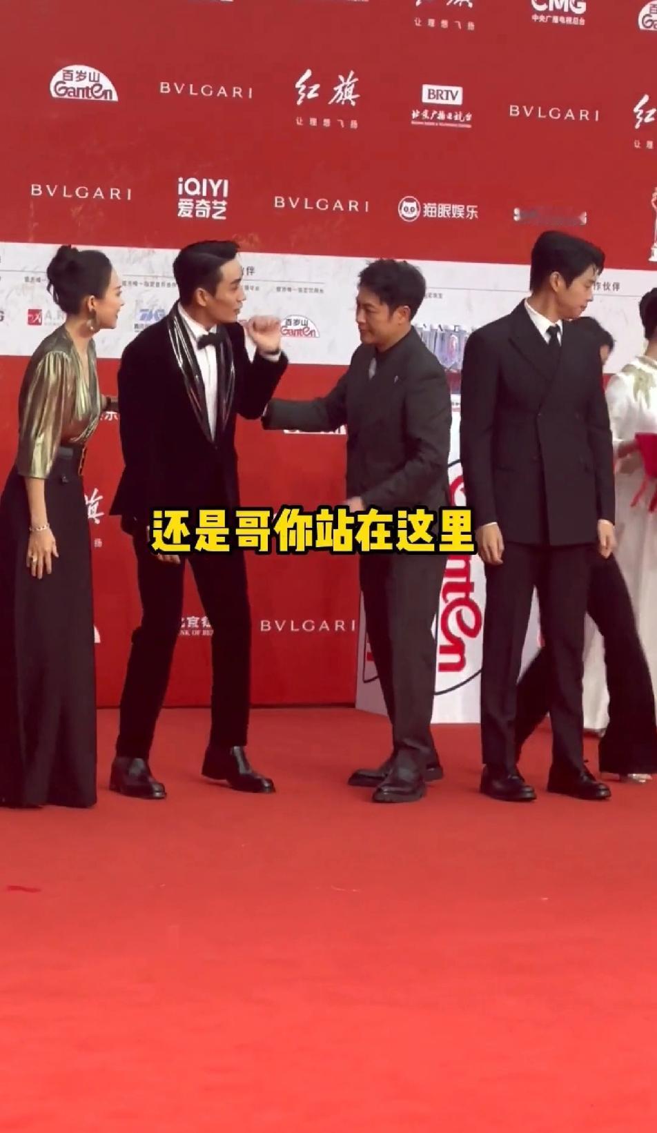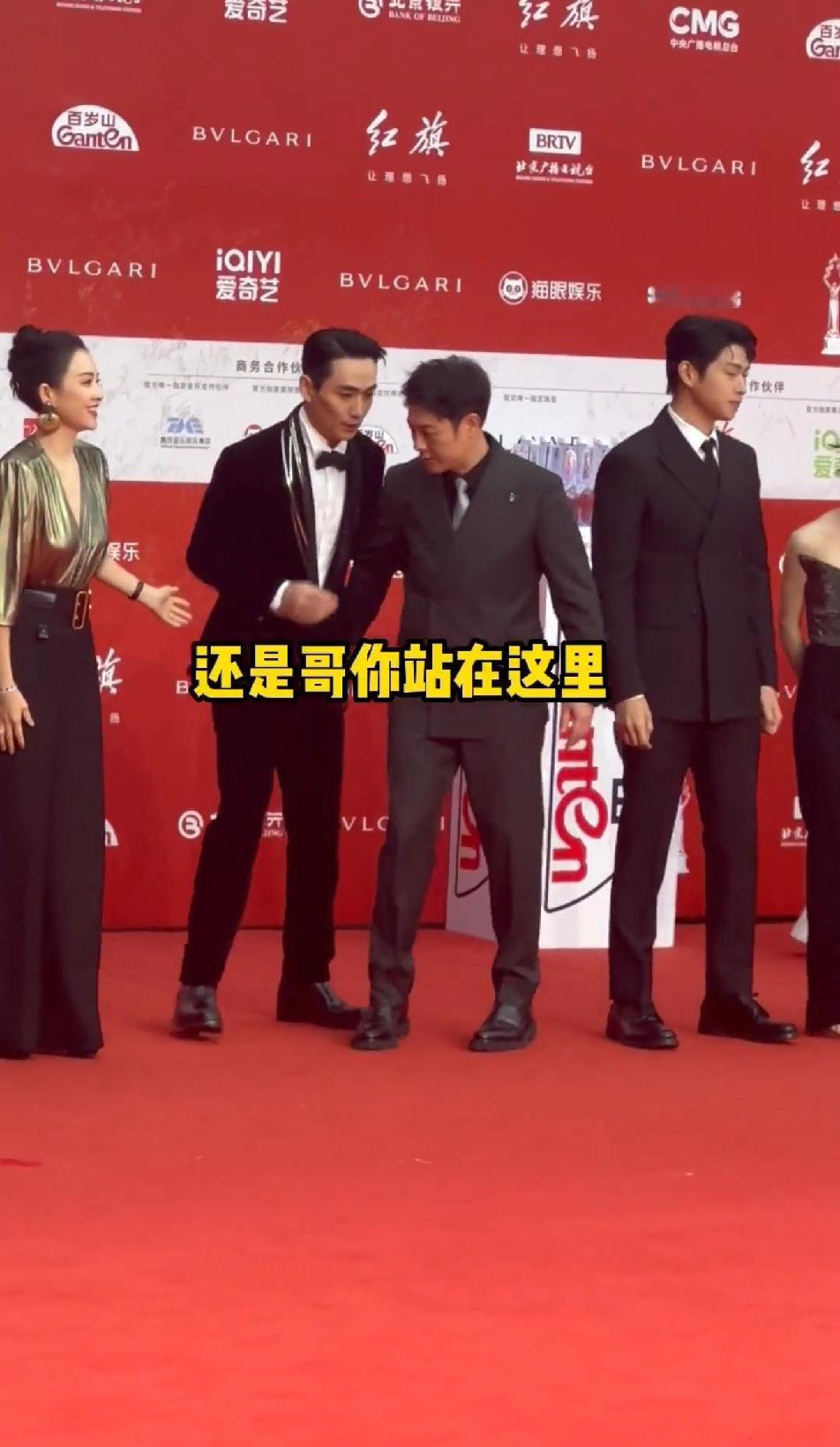 很明显,章子怡更希望朱一龙站在她身边,张颂文和朱一龙走到章子怡身边时开始激烈的互让位置,章子怡看到后,直接上手去拉朱一龙站到她身边,明显她是更倾向于朱一龙站在她身边,手一直伸向朱一龙,但是骨子里谦逊有礼的朱一龙坚持让张颂文站到章子怡身边,从章子怡的表情来看,她更喜欢朱一龙站在她身边,毕竟朱一龙年轻又帅气,还是金鸡百花双料影帝,貌似更有资格站在国际影后身边!章子怡