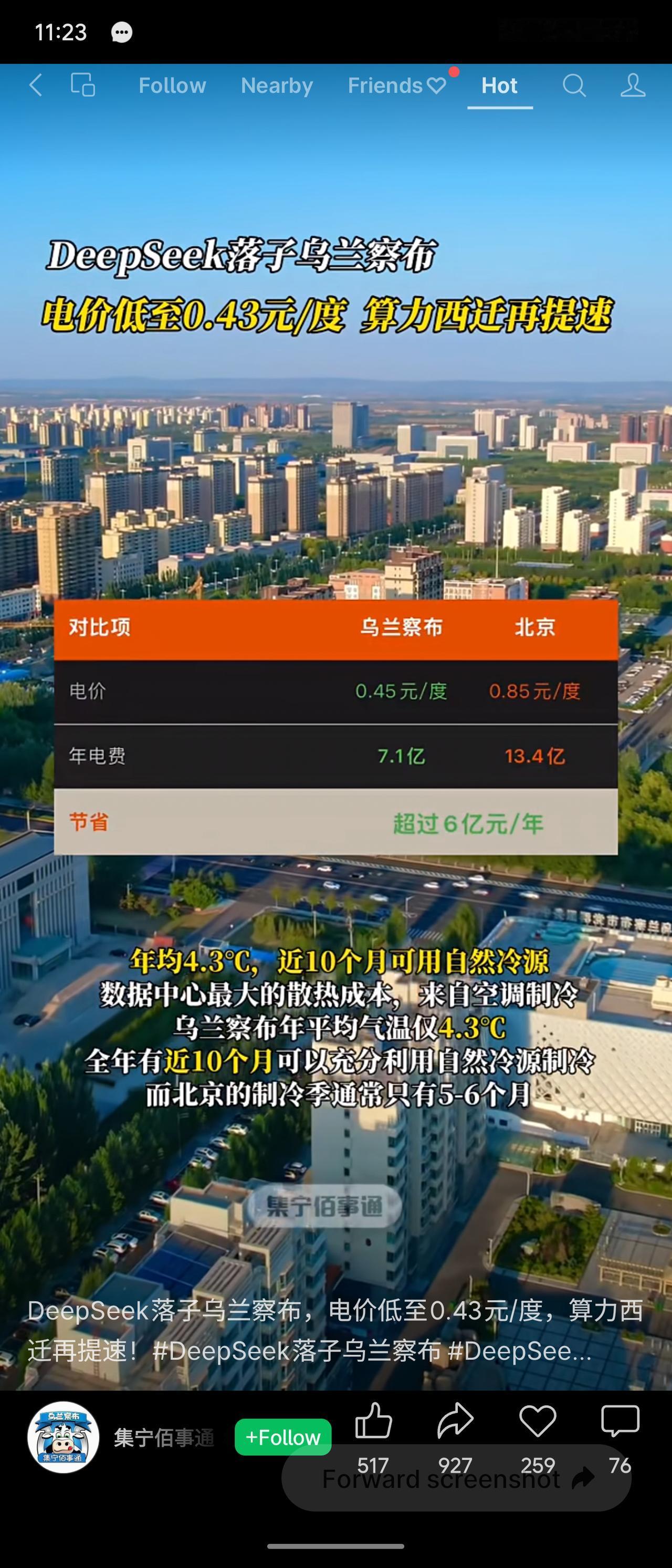 DeepSeek将数据中心落户内蒙古乌兰察布,利用当地0.43元/度的低电价(比北京便宜近一半)和年均4.3℃的天然冷源,年省电费超6亿元。一个万卡集群每天可省5.3万元。同时招聘运维与交付岗位,当地已聚集华为、苹果等84家企业。此举是“算力西迁”的典型,既降本又减碳,但对东部算力延迟敏感的业务仍需权衡。
