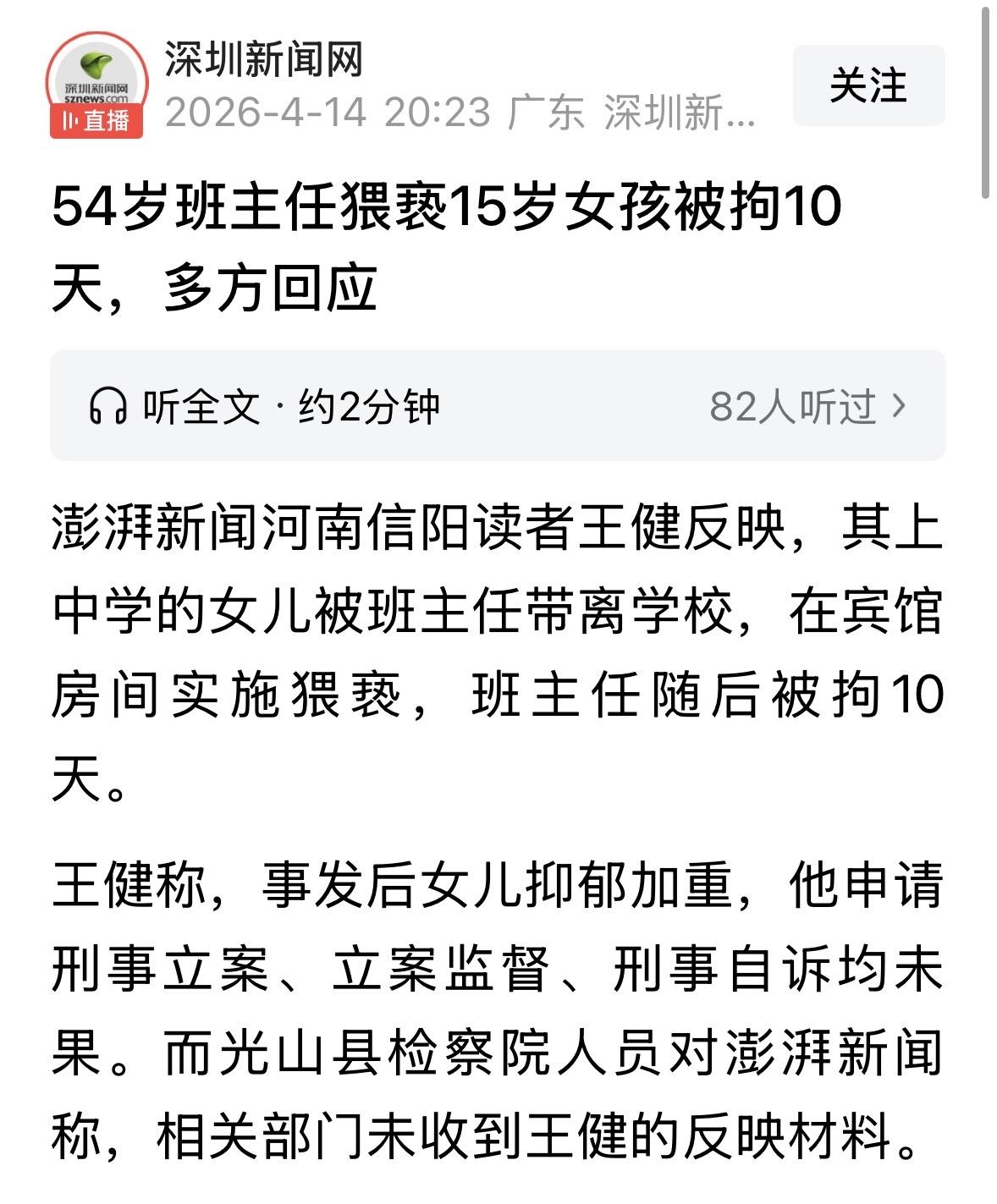 河南信阳,男子得知,自己15岁的女儿竟被男班主任带去宾馆,对方以关心学习为由,对