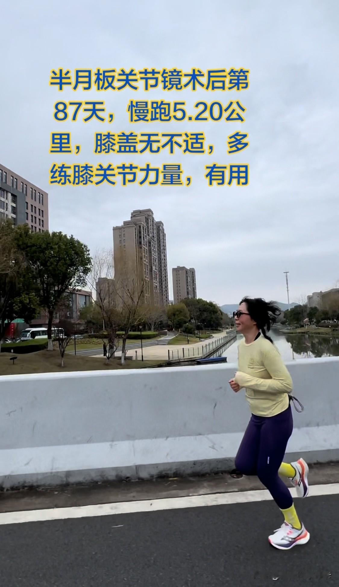 今天是半月板术后第87天,慢跑了5公里,配速7分,膝盖没有任何不适,开森哈[大笑]