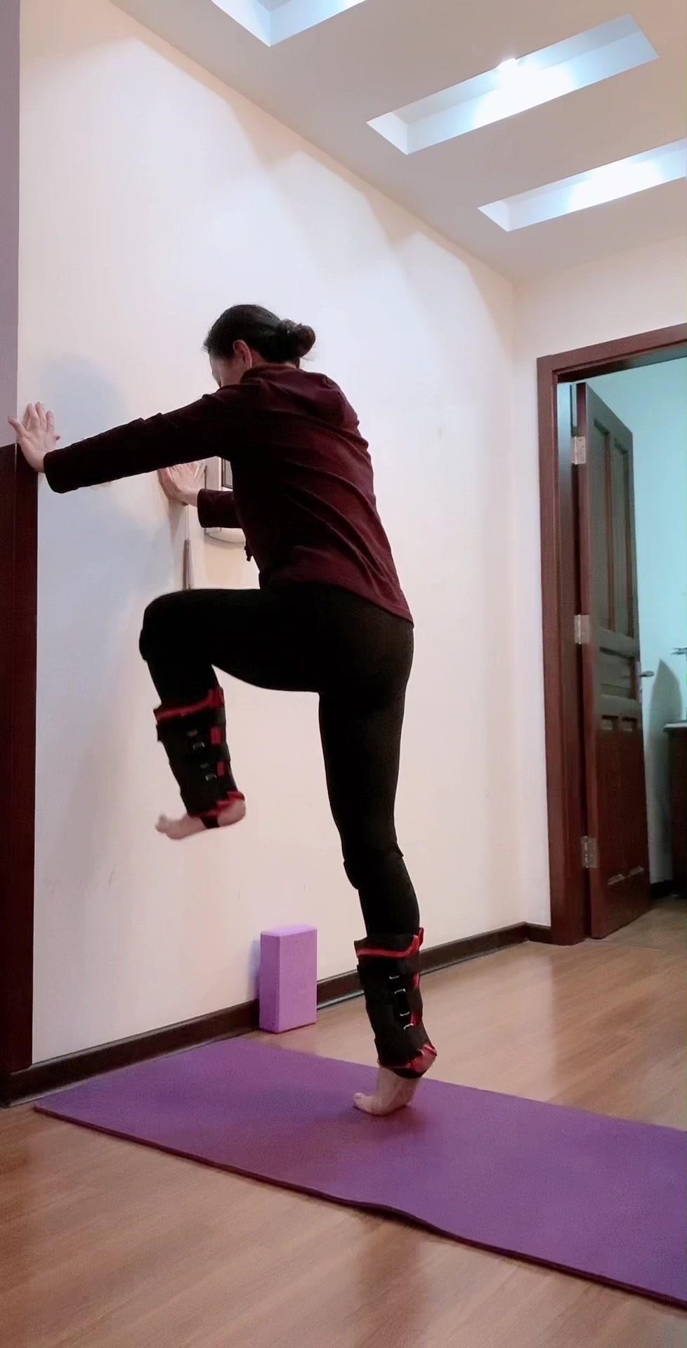 4️⃣交替提膝提踵:舒缓膝盖,这个动作我刚开始以为难,扶着墙做就很简单,膝盖感觉松快了不少,上下蹲也更轻松~
