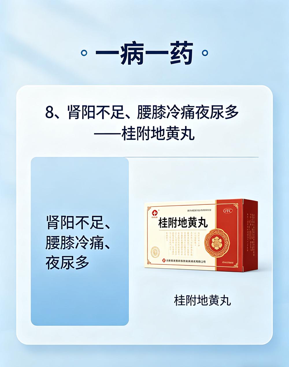 8、肾阳不足、腰膝冷痛夜尿多——桂附地黄丸