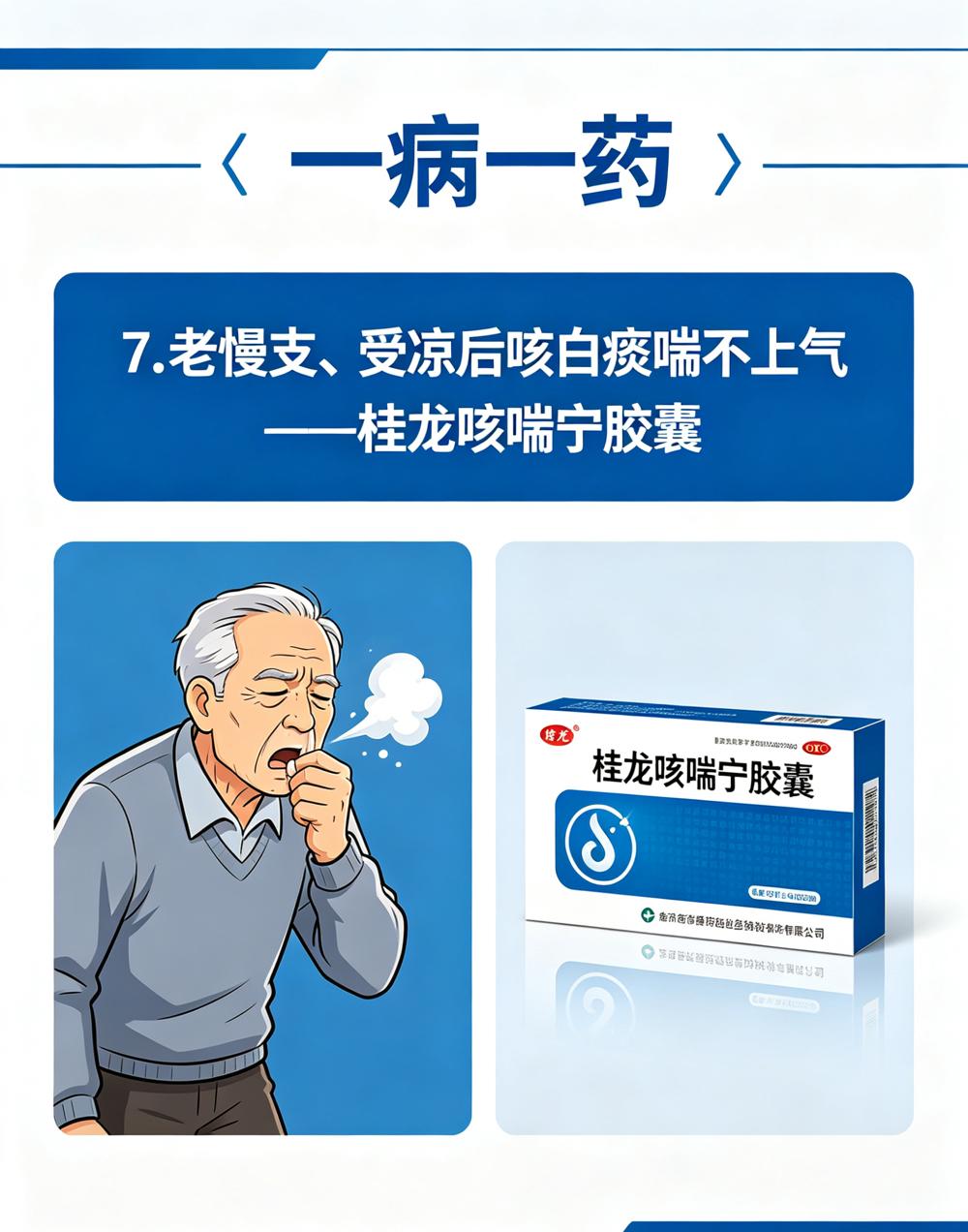 7、老慢支、受凉后咳白痰喘不上气——桂龙咳喘宁胶囊