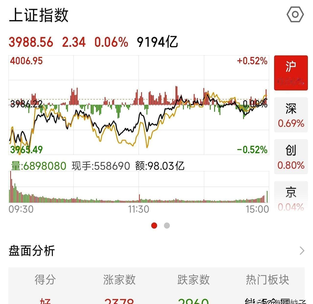 大盘临近收市回头一砸,K线上只留下一颗近似十字的假阳,收在3983点上方,面子有了,里子发虚。