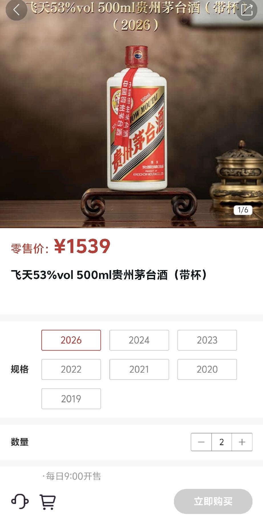 正好身边朋友说抢到可以转给他,我就直接付款了,不然两瓶三千多,隔几天就能抢到的话,资金压力还是挺大的。