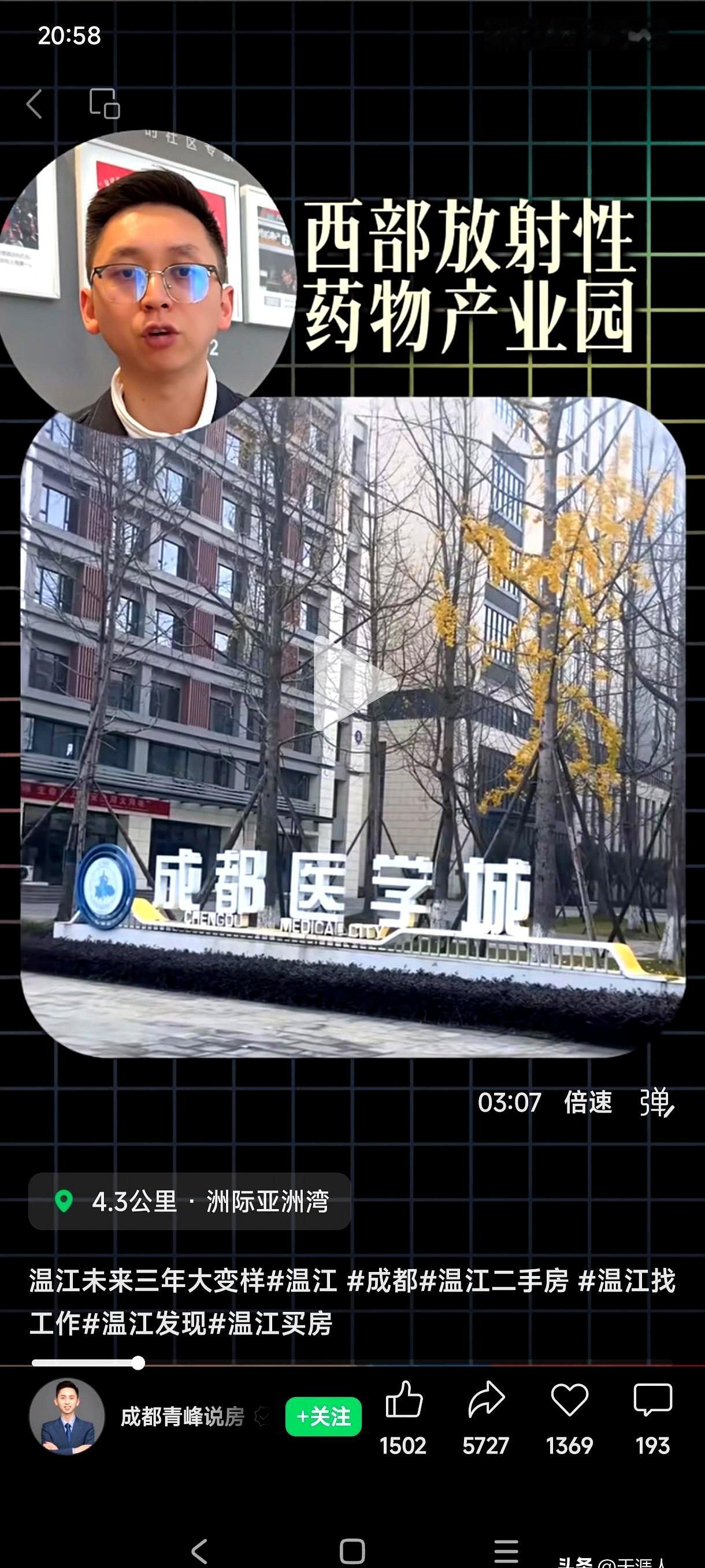 深夜经过永宁时,塔吊像一排星。温江这一把,押的是产业。 成都医学城里,东方研美投