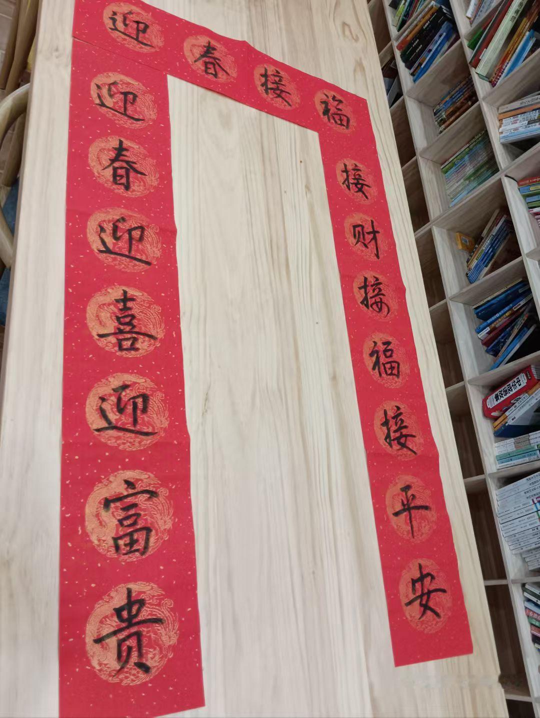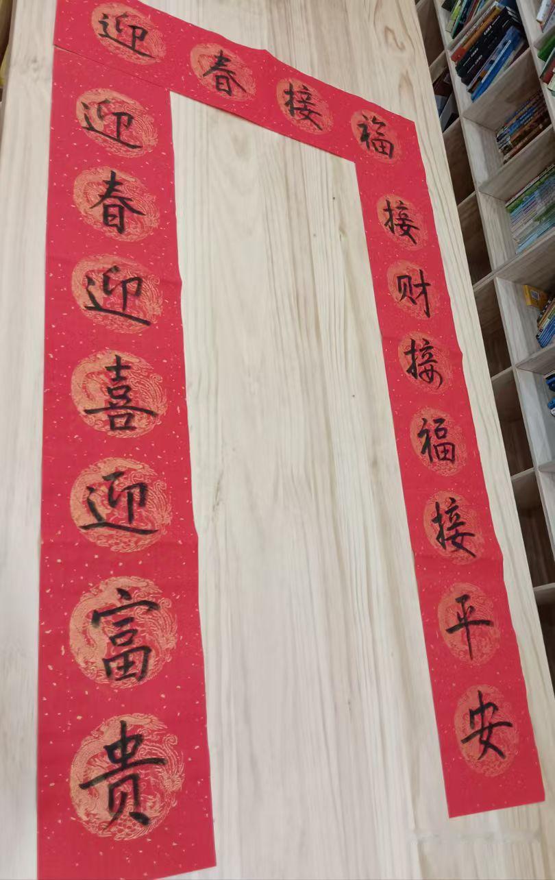 一愿身体康健,二愿出入平安,三愿如同天上星,财源滚滚永不断!天南地北大拜年书法宋词