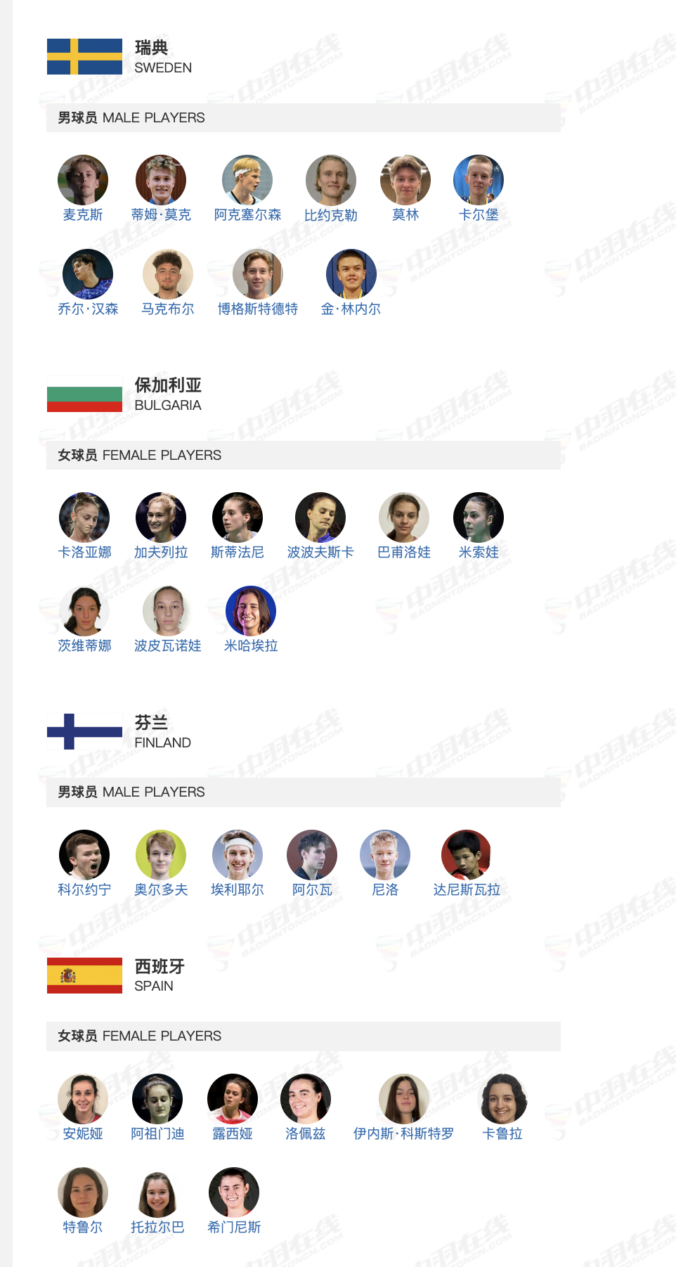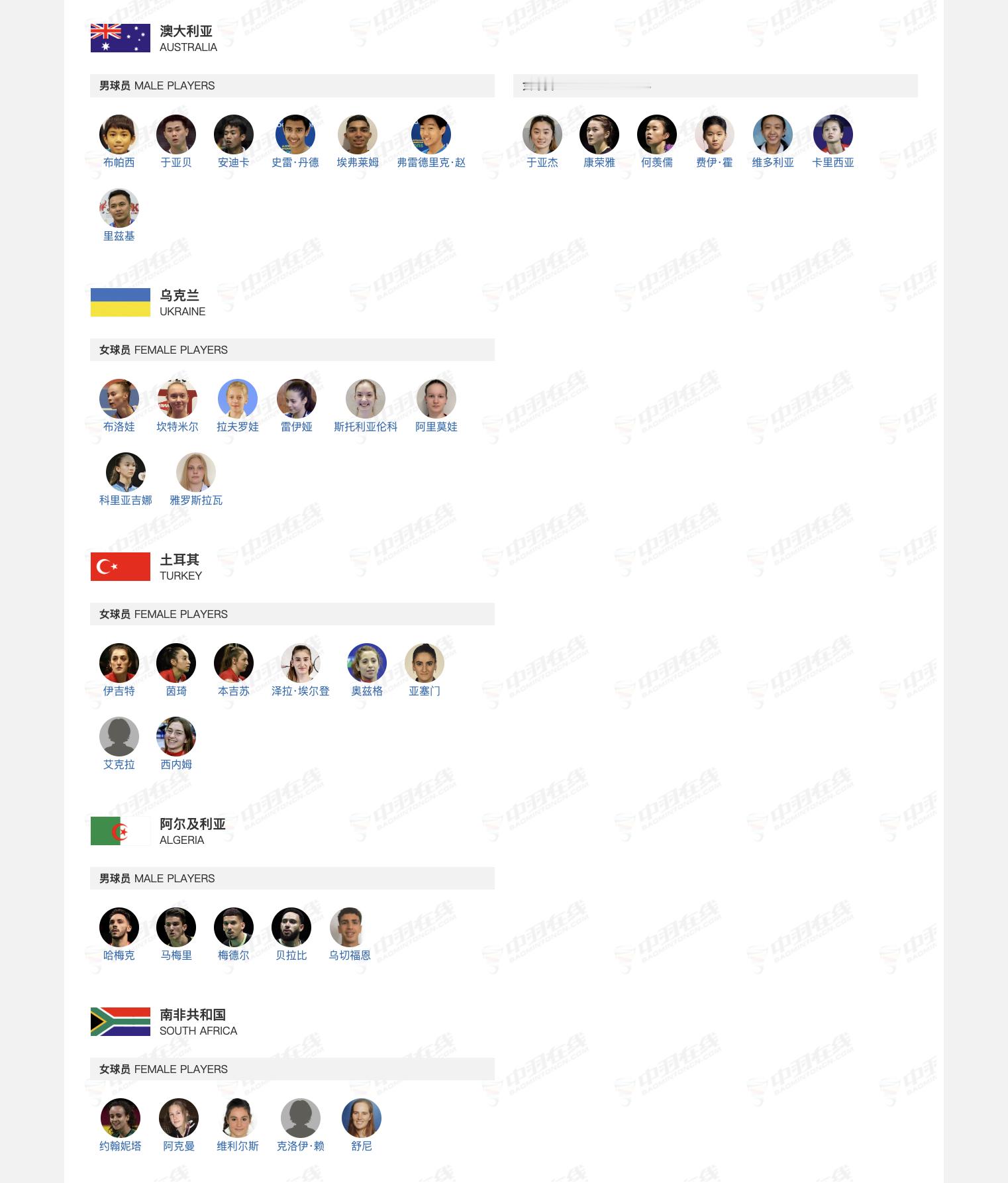 2026年汤尤杯 其余队伍名单羽毛球