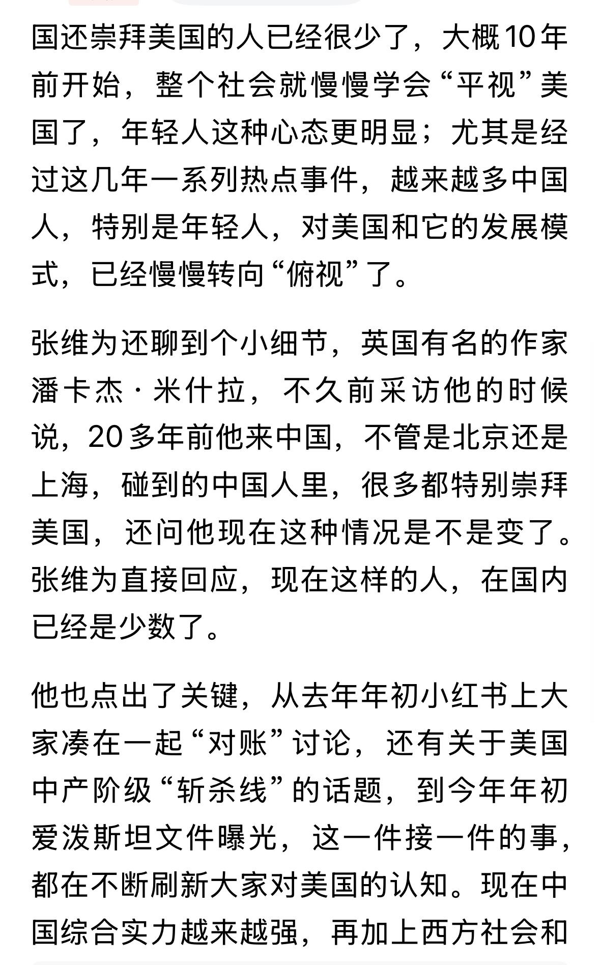 张维为从来都是俯视美国,而任正非一直在讲向美国学习,甚至讲,你想活下去,你就要向