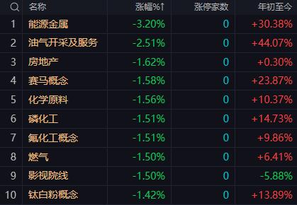 板块方面,医药板块、商业航天概念、CPO概念等涨幅居前;锂电池概念、能源金属、油气股、房地产板块等跌幅居前。