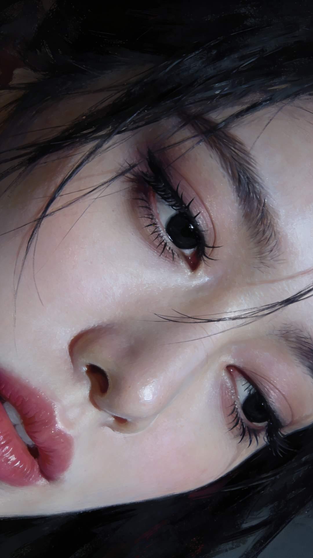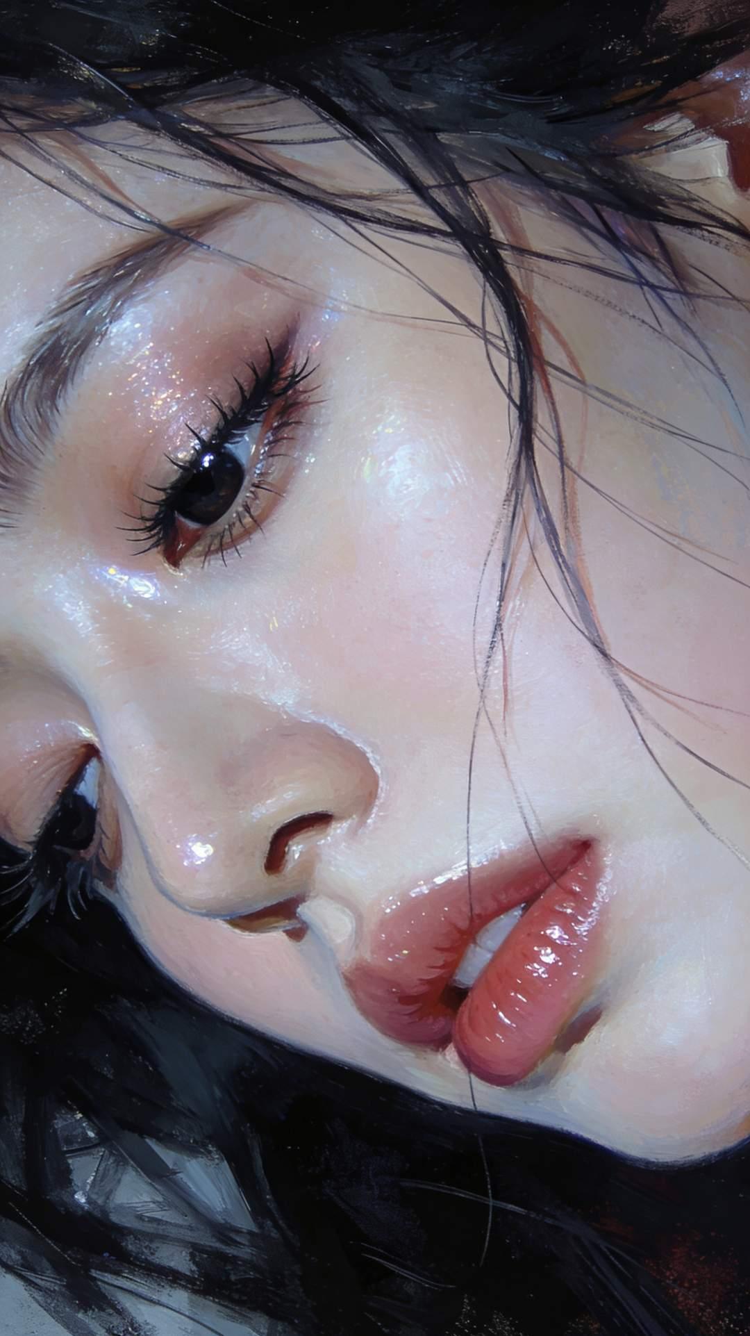 这个口红也太漂亮了吧,一缕头发掠过梦幻般的眼睛,整个妆容魅力无穷,太美了!