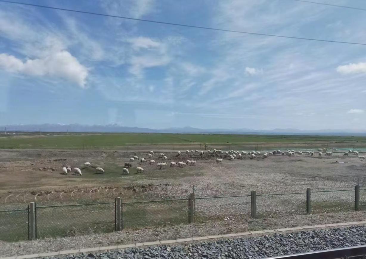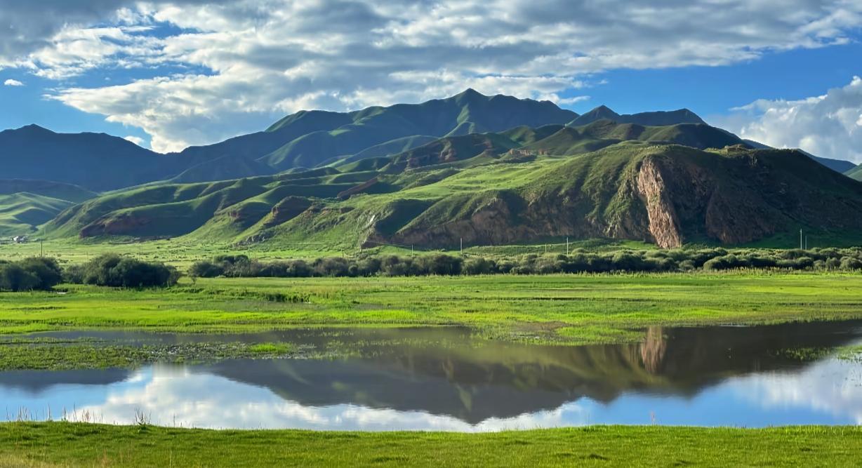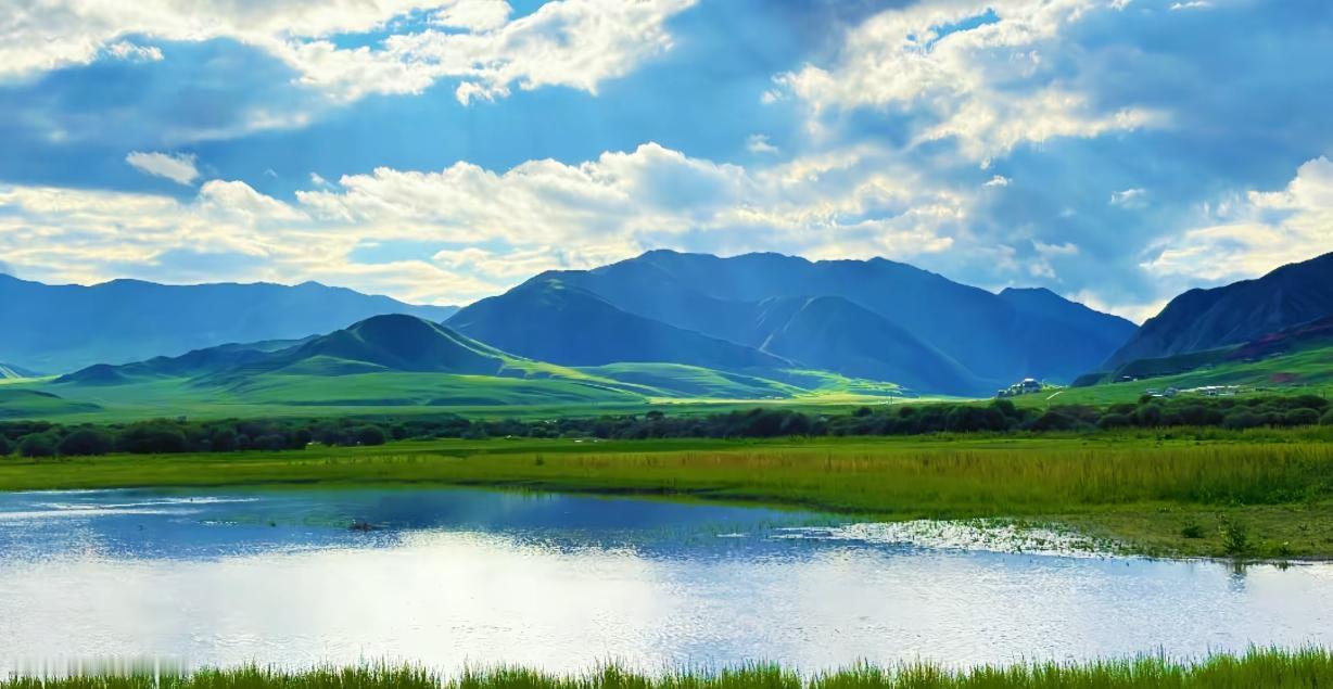 脚下是刚泛新绿的草甸,像被大自然精心铺展的绒毯,顺着地势缓缓铺向天际,与湛蓝的天空无缝衔接,分不清哪里是草、哪里是天。成群的牛羊散漫地散落其间,像散落的珍珠般点缀在绿毯上,低头悠闲啃食,偶尔甩甩尾巴,连时光都仿佛在此刻慢了下来。