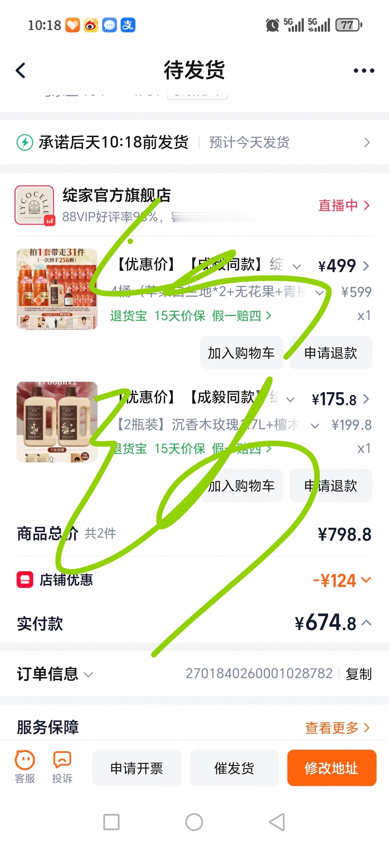 一顿手忙脚乱,终于是抢到了,天猫抢到了499的礼盒和两桶洗衣液,抖音抢到了299