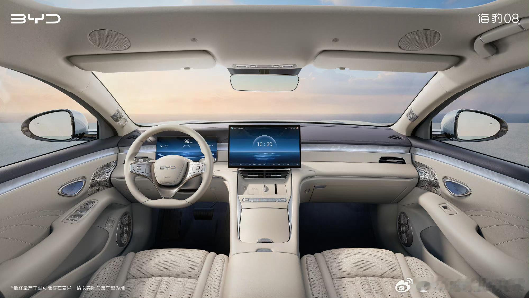 比亚迪海报08的内饰出来了,好像欢呼声还挺高的,这个内饰风格简约温馨,环抱感很好,期待看看实车的效果比亚迪