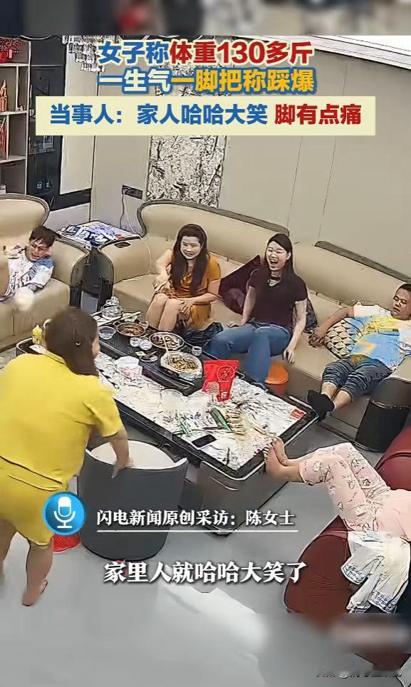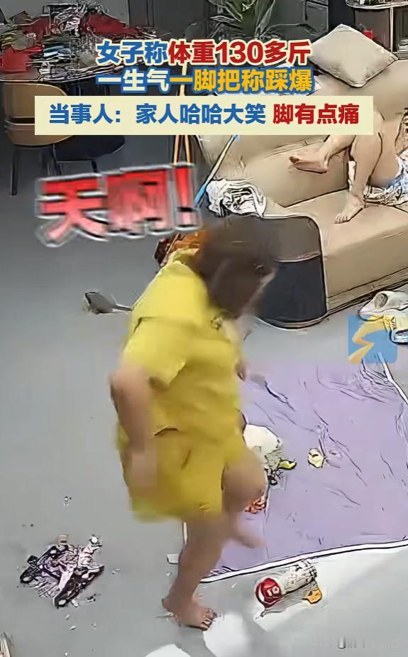 信息来源:《广东普宁,女子称体重130多斤,一生气一脚一把称踩爆。当事人:家人哈哈大笑,脚有点痛》闪电新闻