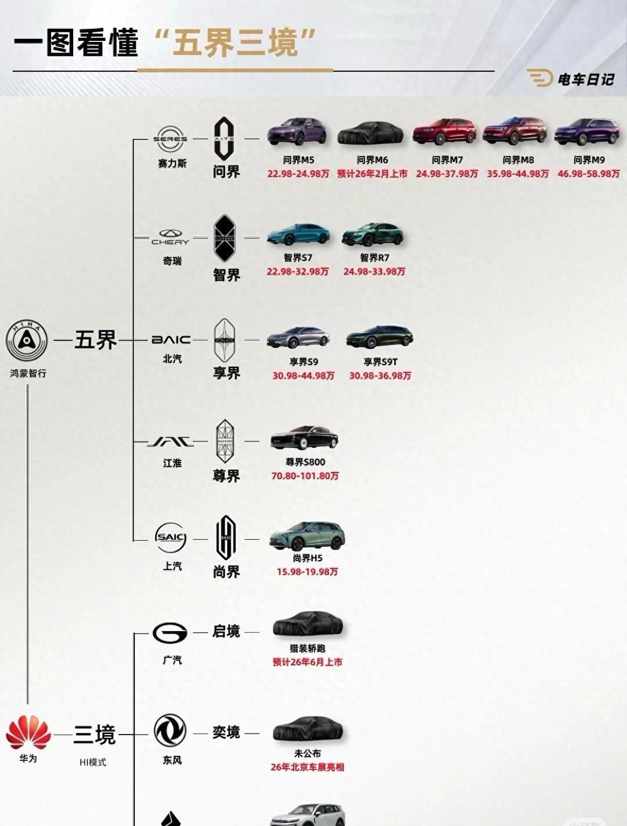 凭什么是智界掉队了?说白了,五个品牌都在打“华为智驾”这张牌,价格区间叠在一起。问界、智界、享界在20到35万这个价位段撞了个满怀。消费者挑花眼,渠道和注意力被摊薄了。