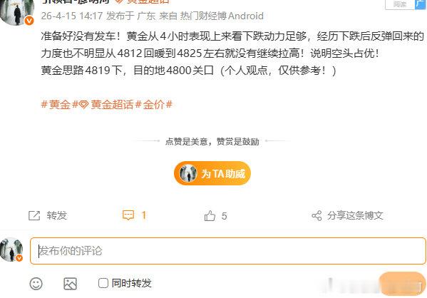 同学们,这单可离场!指出的4819空抵达4806位置,130点落袋为为安!之后的先等4800关口的测试情况,我们稳扎稳打就好!