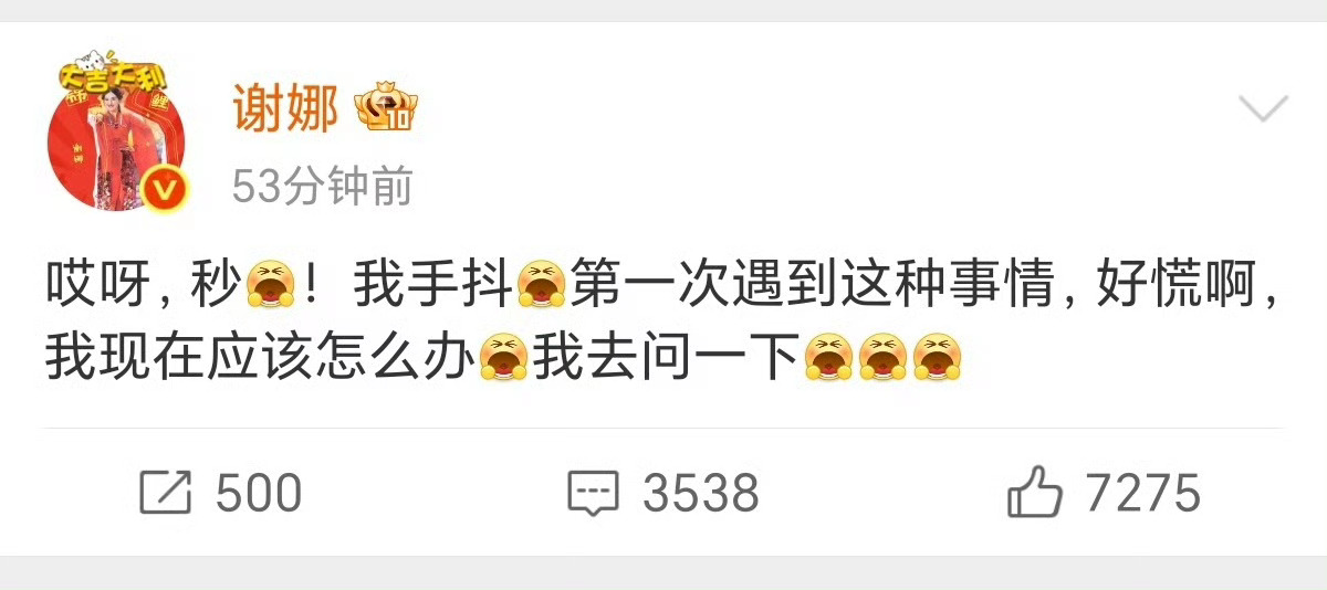 谢娜发文说手抖被大家的偏爱狠狠打动,谢娜发文说手抖,慌张里全是对舞台的赤诚与热爱