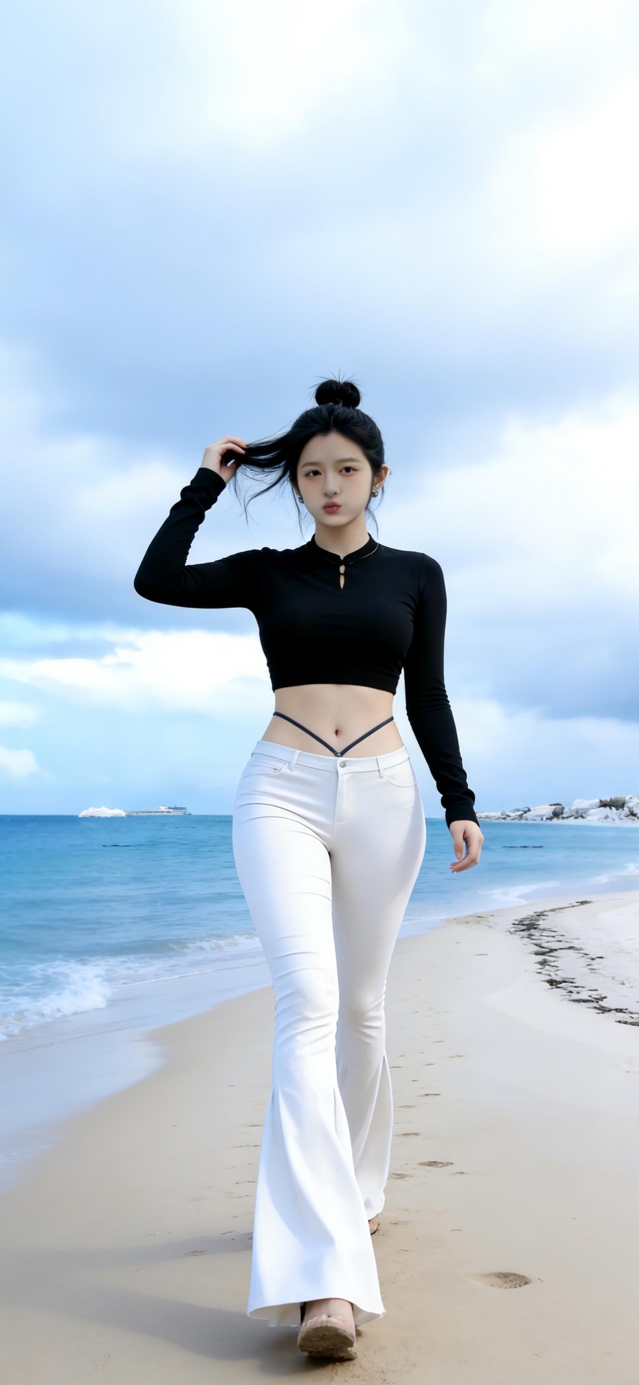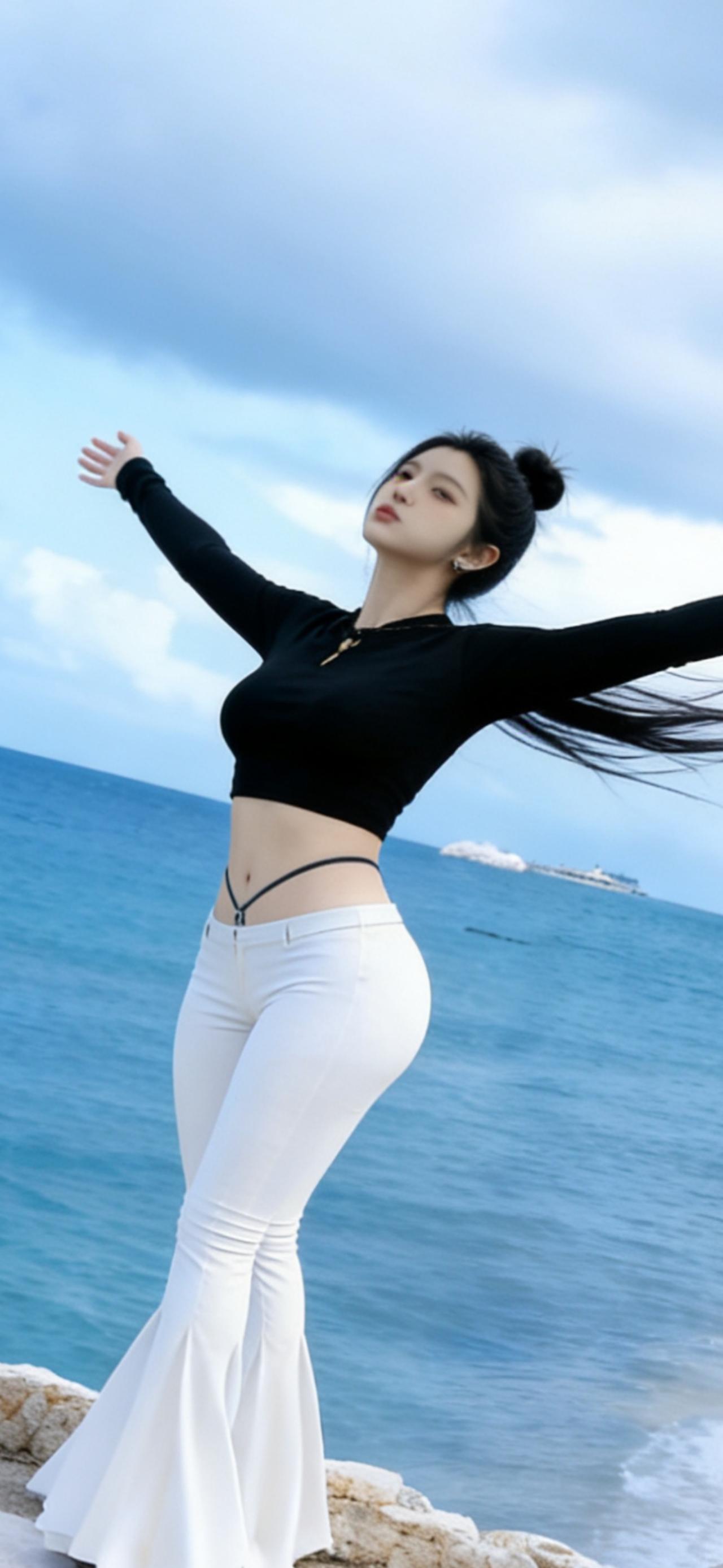 张艺凡运动感穿搭壁纸,休闲时尚,长直美腿吸睛。张艺凡
