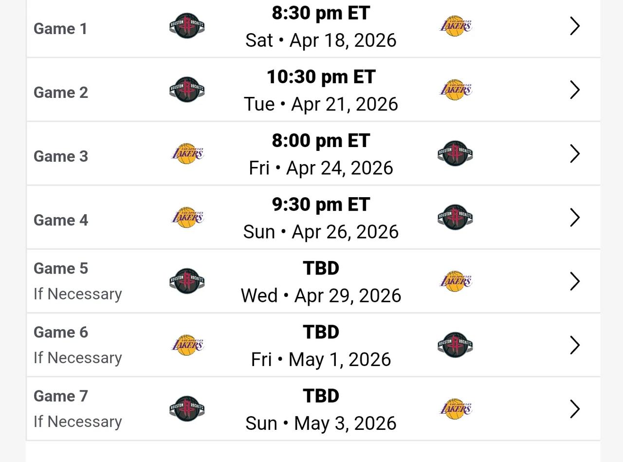 火箭和湖人的首轮比赛时间出来了,图片上的是美国时间,如果换算成北京时间的话,那就是