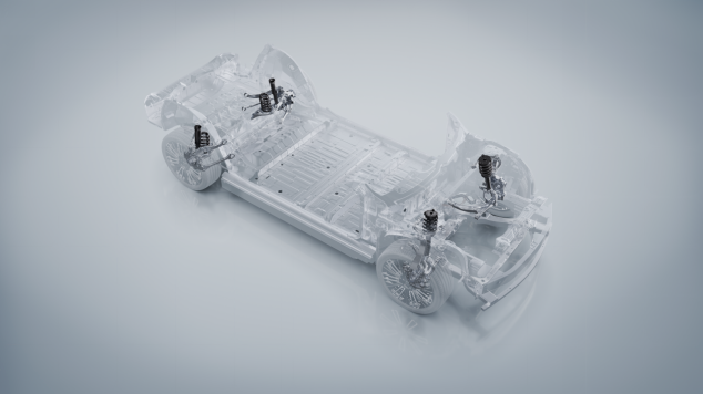 底盘系统采用前双叉臂独立悬架与后五连杆独立悬架的组合,关键部件使用铝合金材料以优化悬挂性能。配备的液压可变阻尼悬架系统能够根据实时路况调整阻尼特性,提升行驶品质与乘坐舒适性。全系标配的eAWD智能电四驱系统通过智能算法实现扭矩动态分配,增强了车辆在各种路况下的稳定性和通过性。