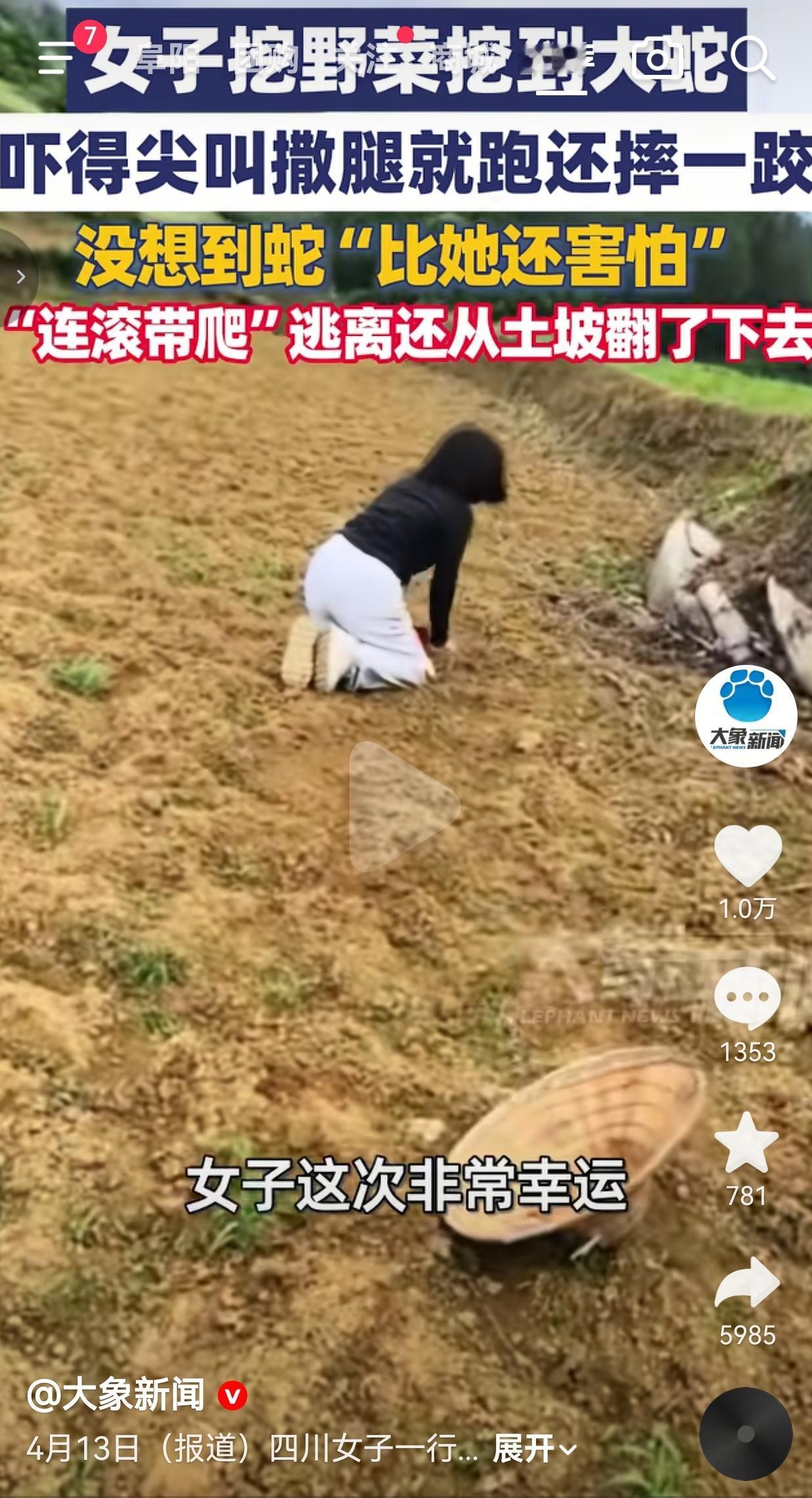 女子挖野菜挖出大蛇,吓得尖叫着连滚带爬跑,结果蛇比她还慌,拼了命逃窜还翻了土坡。网友:这哪是遇蛇,这是双向奔赴的惊吓啊!