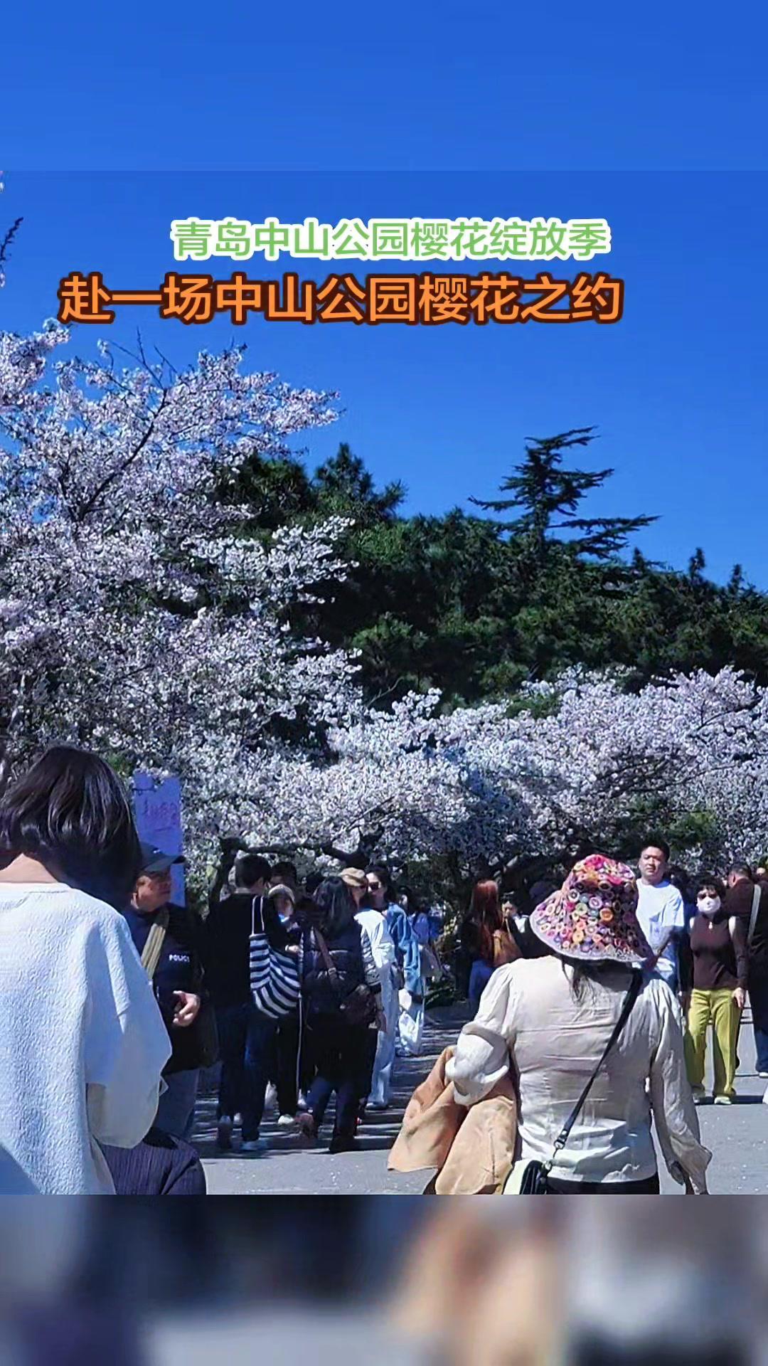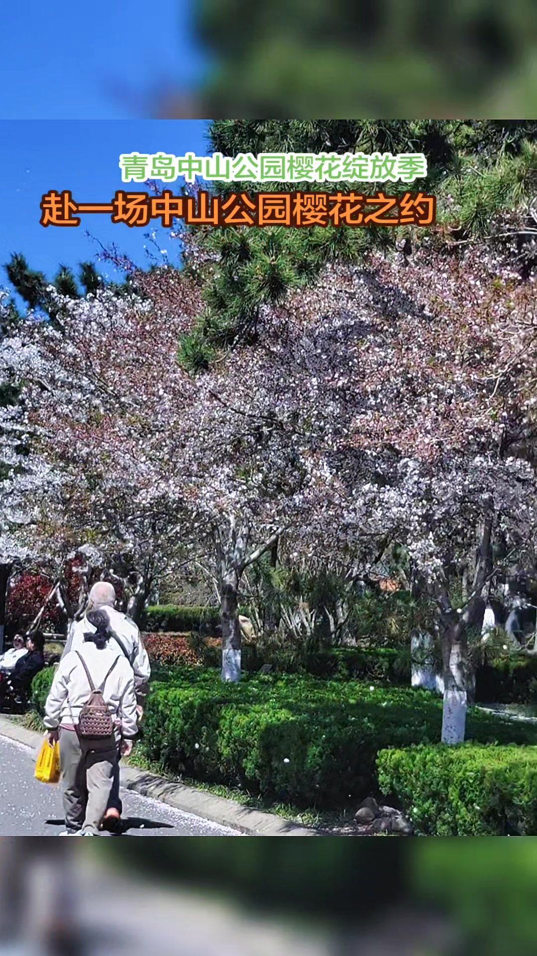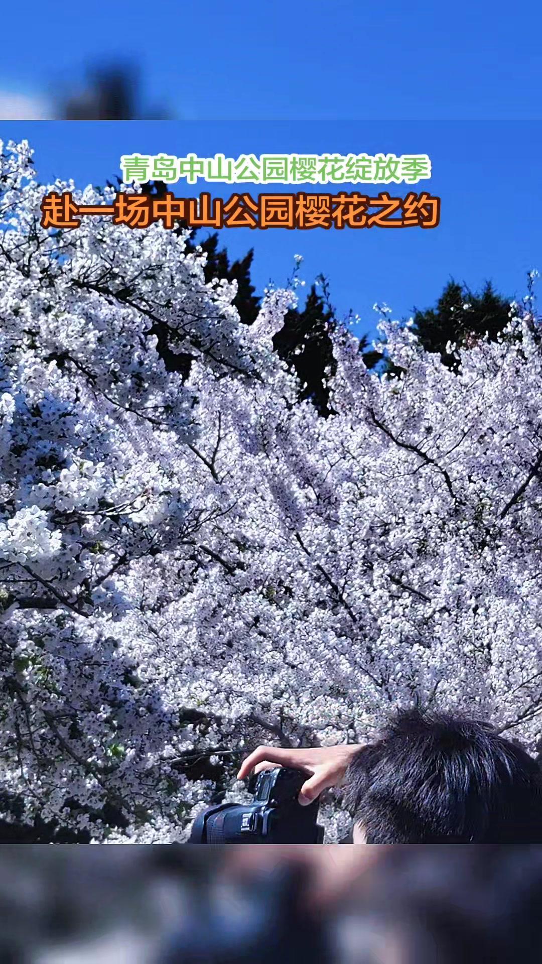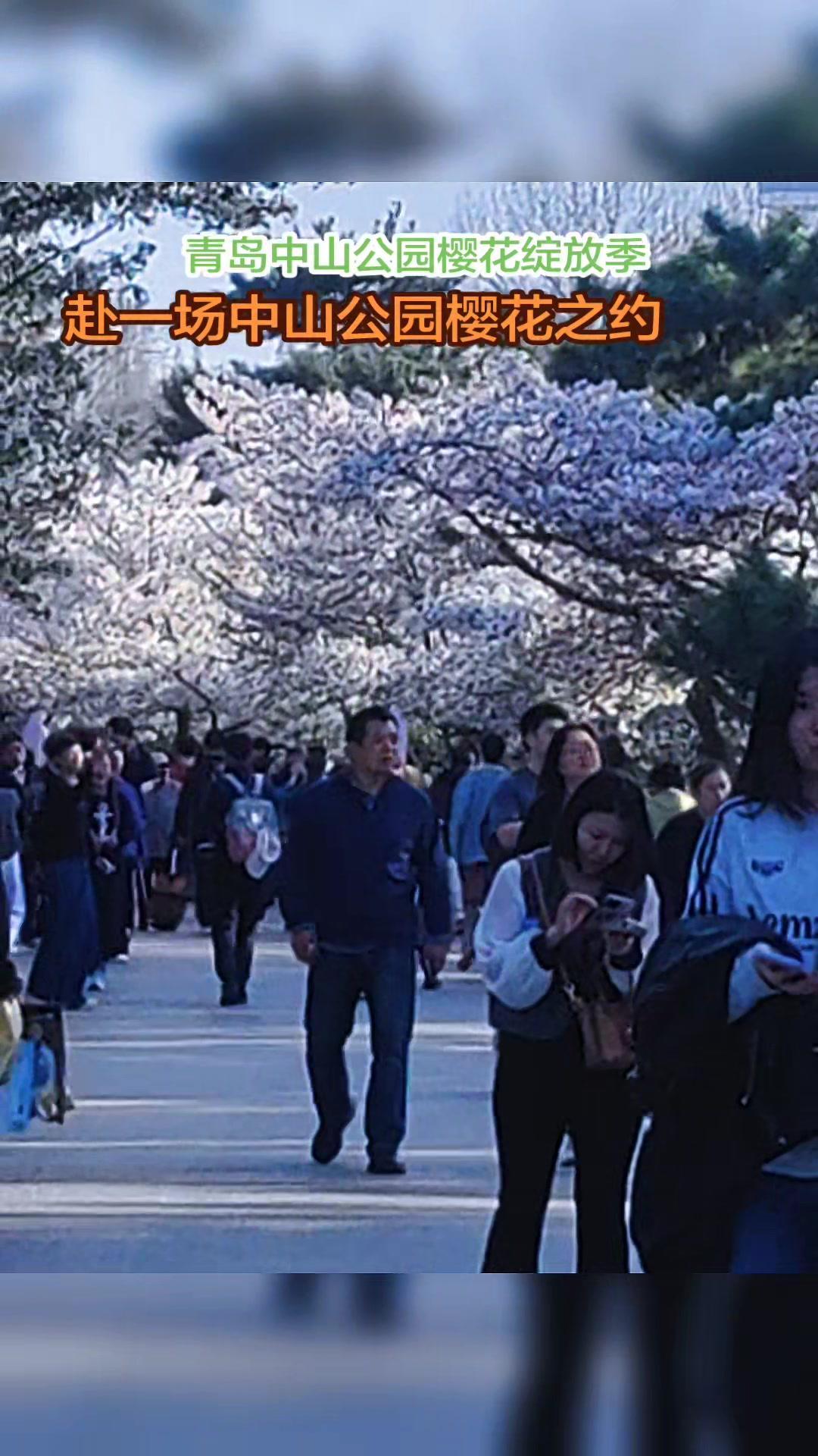 🌸青岛中山公园樱花季太绝了!走进中山公园,就一头栽进樱花的浪漫里~远远望去,樱