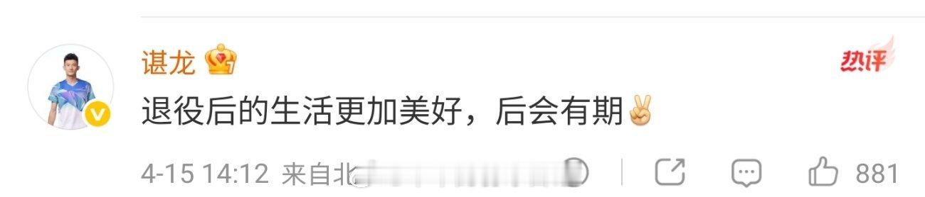 今天, 发文官宣退役。留言:新的旅程,祝一切都好。:退役的生活更加美好,后会有期