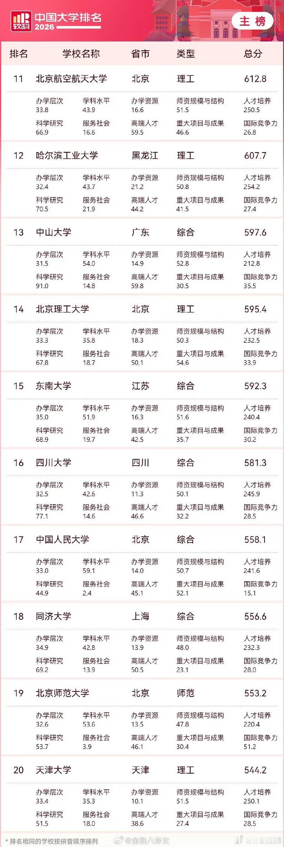 又瞎搞了!在各种各样的大学排名榜里,我觉得软科、ABC排名相对靠谱些,校友会、武