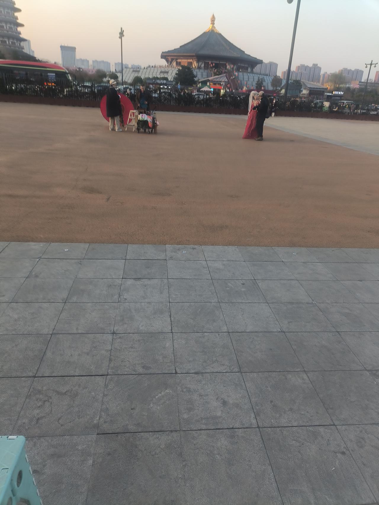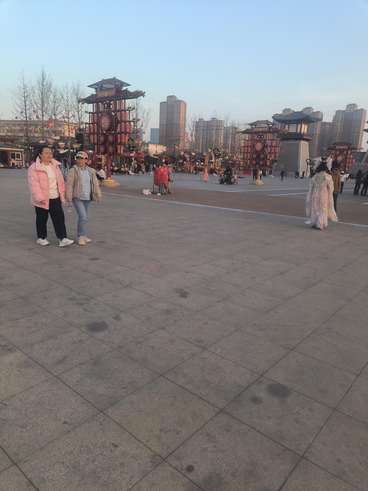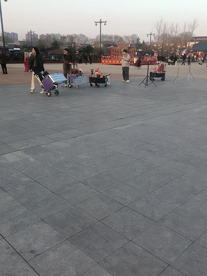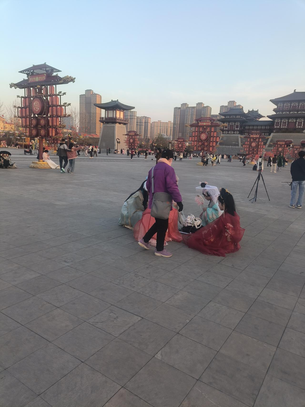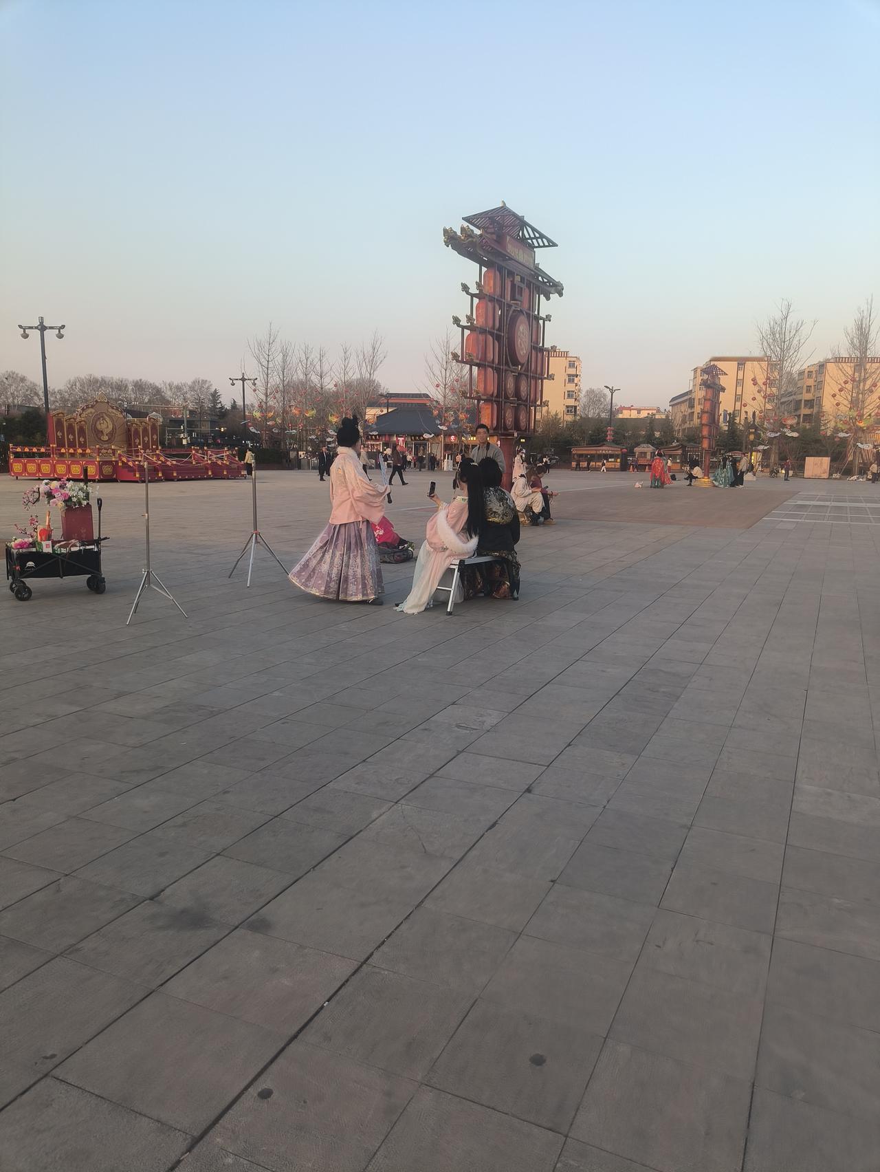 我是下午6:20开始拍下这些,这时人们纷纷拉着小车来到这里拍照。广场上,穿着漂亮汉服的小姐姐们姿态优雅地摆着造型拍照。