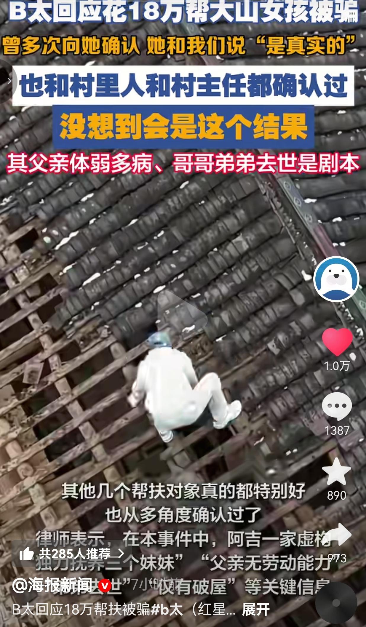 博主B太花18万帮扶大山女孩反被骗,女孩全家编造悲惨剧本,父亲重病、兄弟离世全是假的。